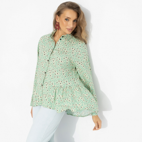 Объемная белая рубашка со стоячим воротничком из хлопка. Как будто только что накрахмалена. Хрустящая свежесть и энергия жизни. Ты готова к свершениям и покорению карьерной лестницы. Только вперед!