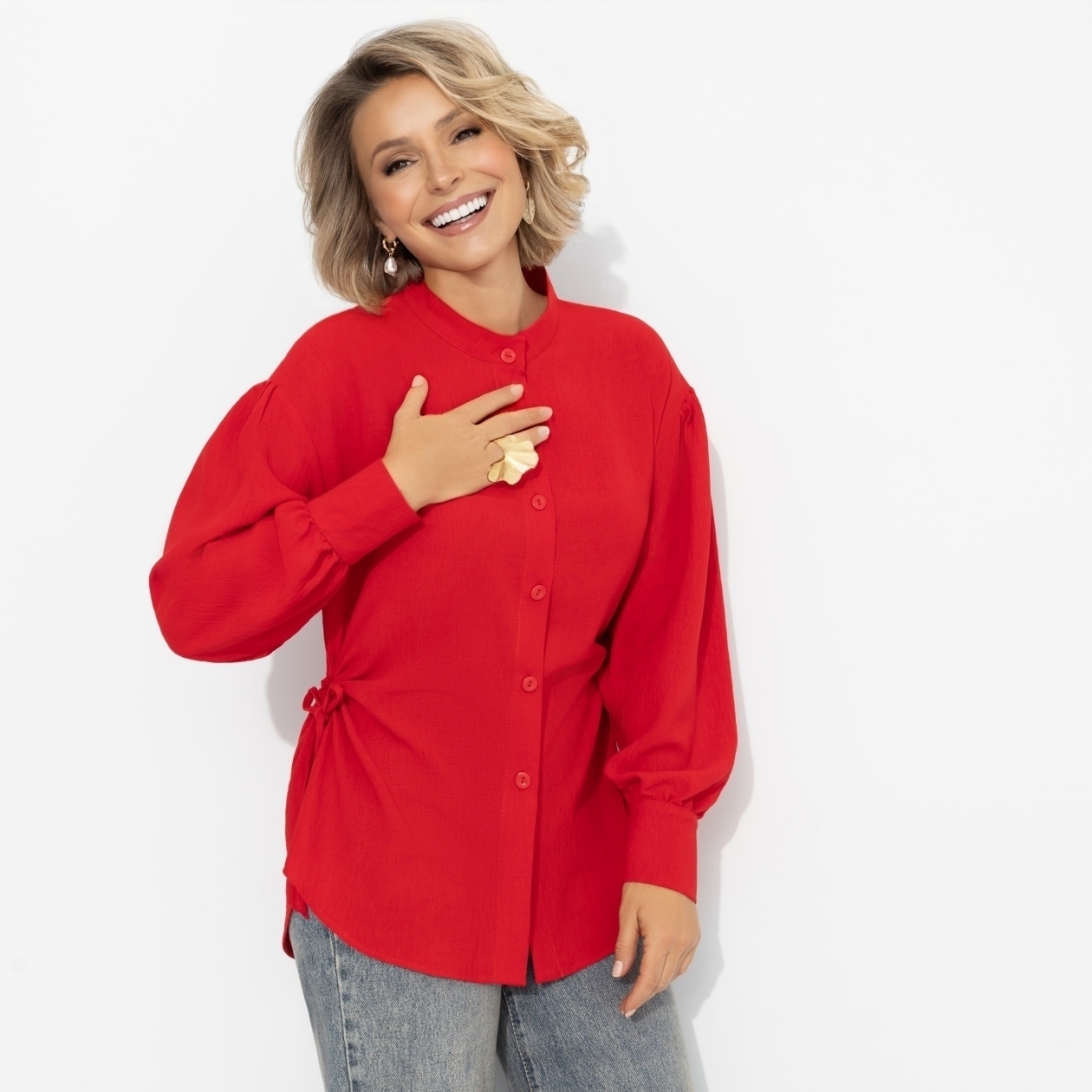 Осень в ритме фламенко! Красная рубашка ЧАРУТТИ из новой коллекции согревает взгляд и дарит энергию даже в самые хмурые дни. Тот случай, когда знойный характер Андалусии встречается с комфортом осени. Авангардная рубашка из плотной ткани алого оттенка. Акцентная спинка с разрезом и кружевом. Объёмные рукава, асимметричный низ и боковая сборка добавляют драматизма. Для тех, кто любит фантазию в базовом гардеробе.