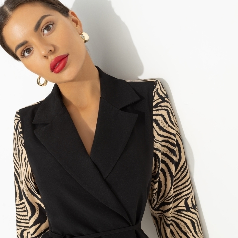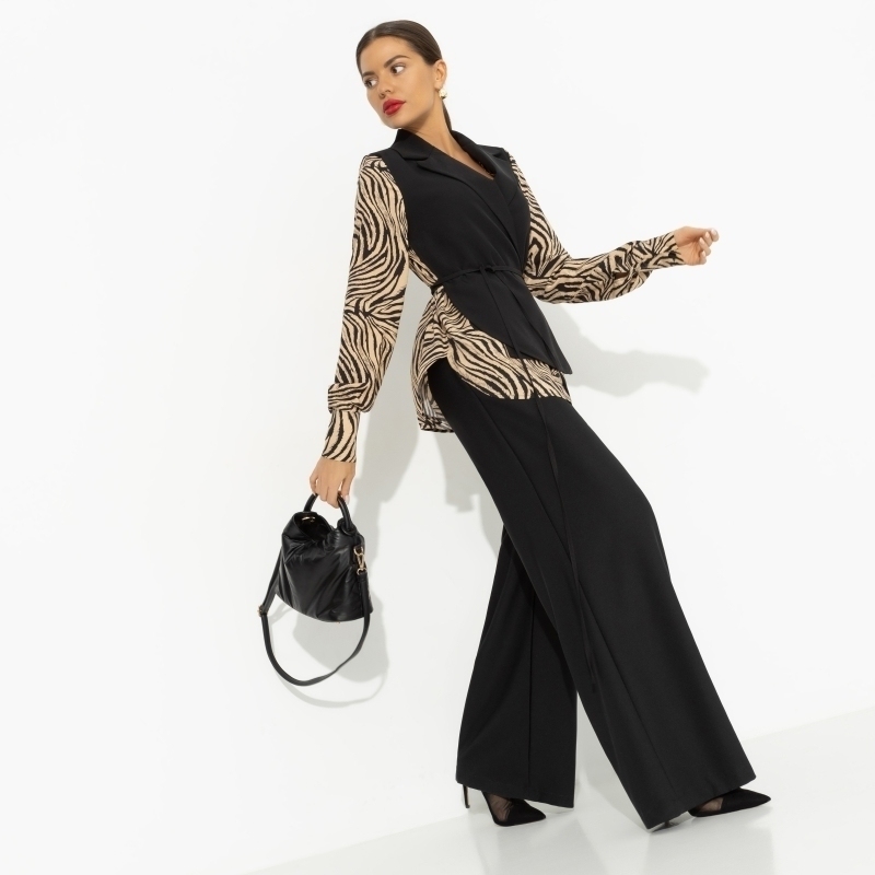 Музыкальность моды в многообразии звучания. Рубашка CHARUTTI с нотами анималистичного принта и делового дресс-кода. Это симфония будет звучать громко при любых обстоятельствах. Рубашка с лацканами. Эффект многослойности по передней части изделия – вшитая часть с тонким поясом из акцентной ткани. Модель на пуговицах, смотрится невероятно эффектно.