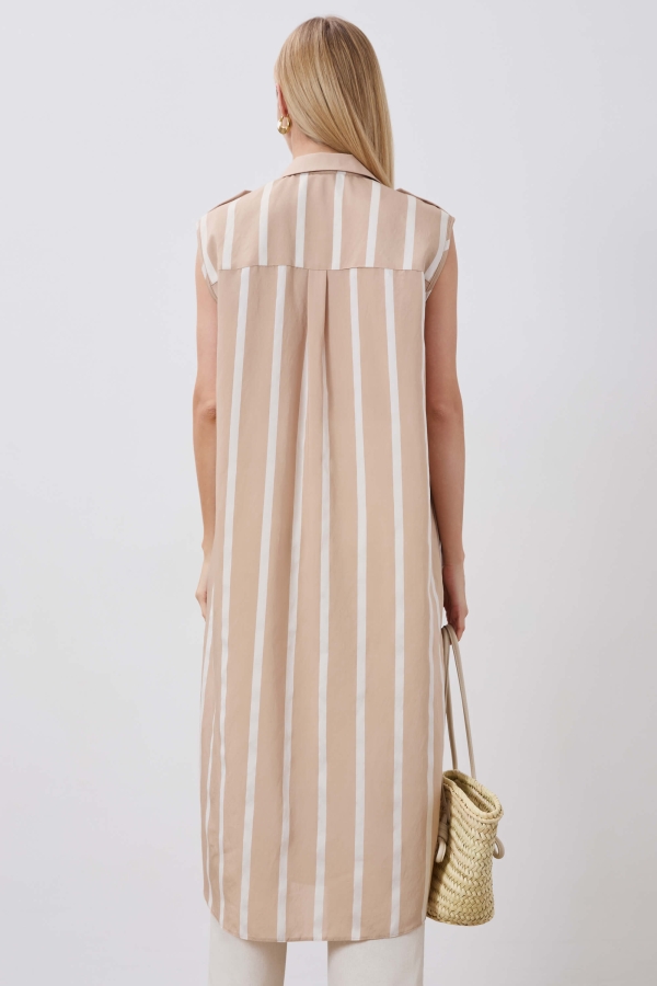 Трендовая рубашка-туника из воздушной, вискозной органзы. Модель свободного силуэта со спущенным плечом и патами. По переду застежка на петли и пуговицы. По спинке кокетка. В боковых швах разрезы. В комплекте узкий пояс из основного материала.