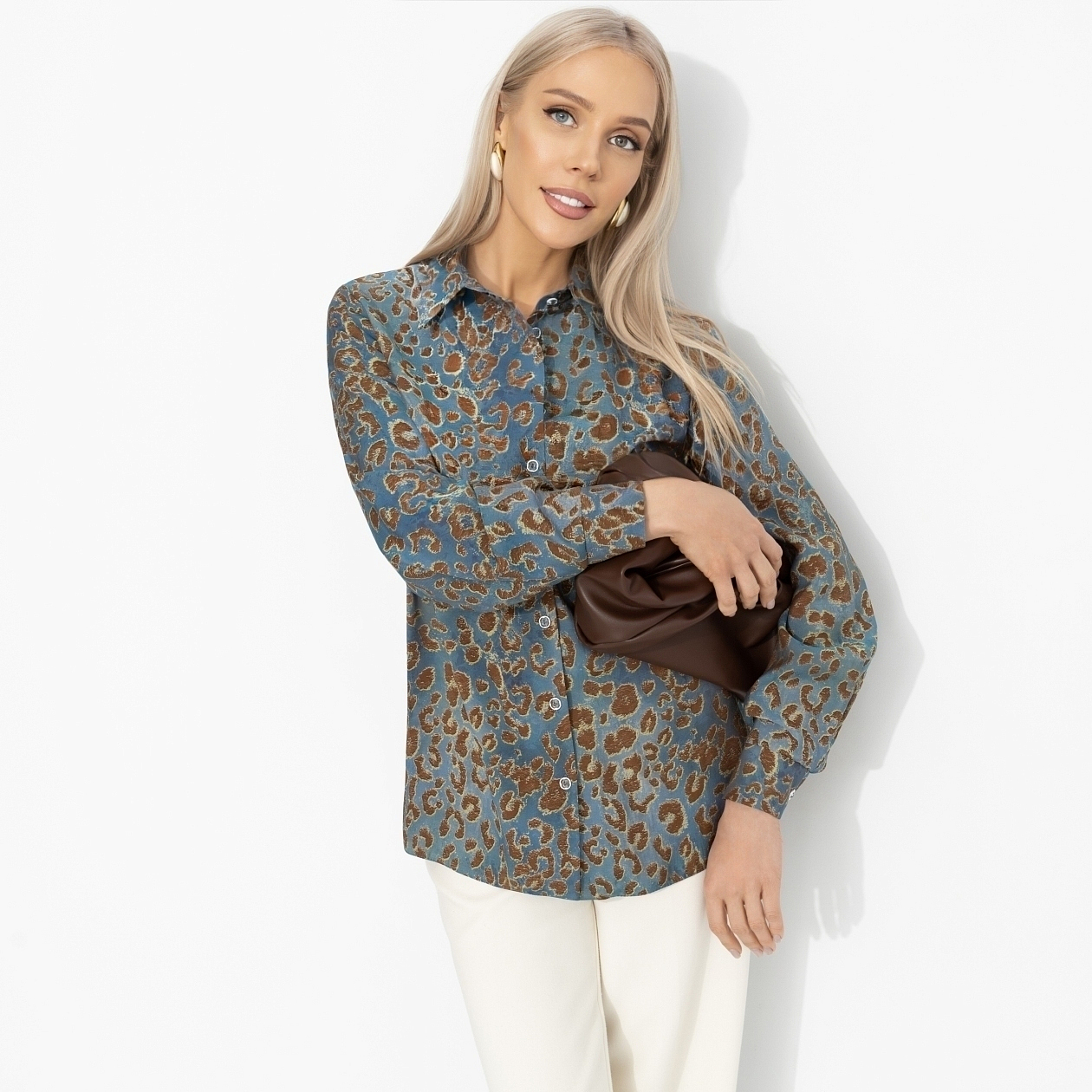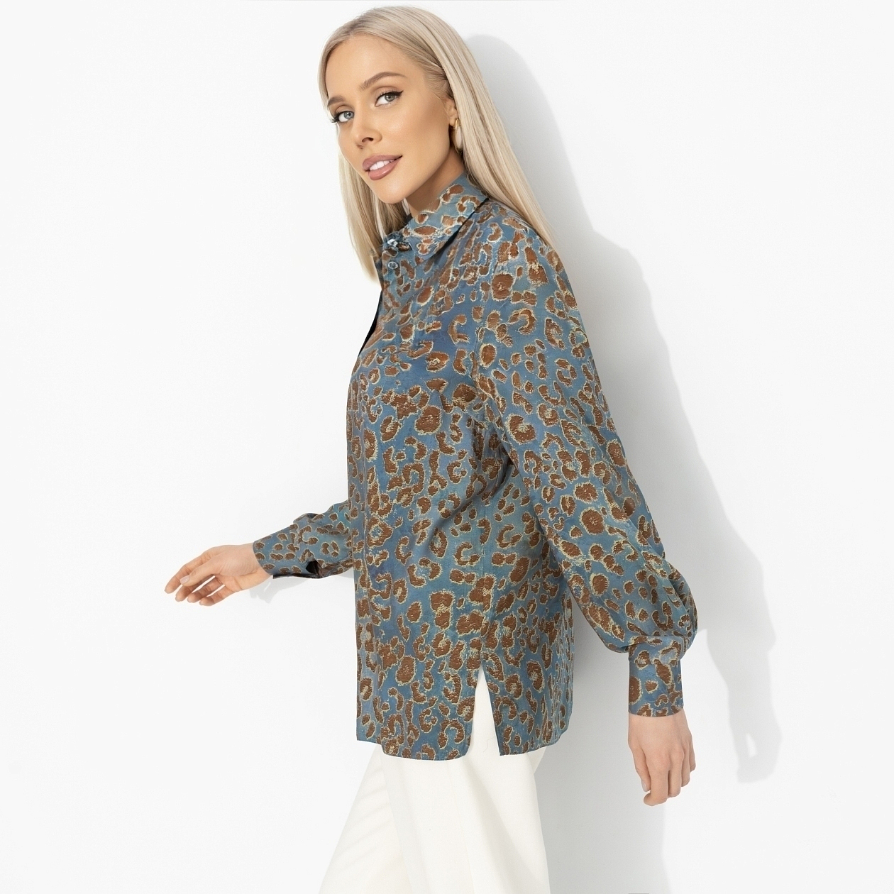 Настоящая мода не шепчет – она говорит громко. Рубашка ЧАРУТТИ из тех вещей, о которых спрашивают: где ты это нашла? Выразительный принт, уверенный характер и настроение подиумов – всё совпало. Дико модно! Рубашка свободного кроя из гладкой ткани с эффектом шёлка. Длинный рукав с манжетами, классический воротник, застёжка на пуговицы. Обещаний в этот вечер станет заметно больше.