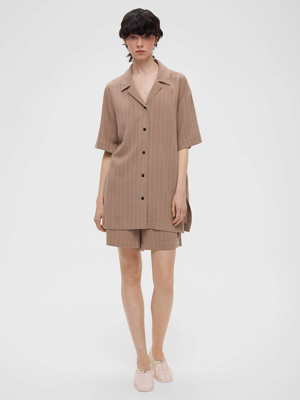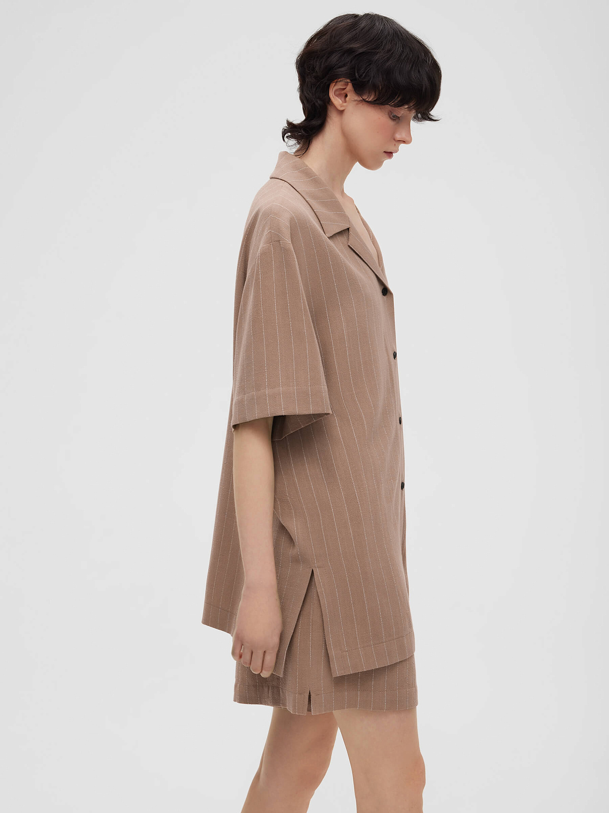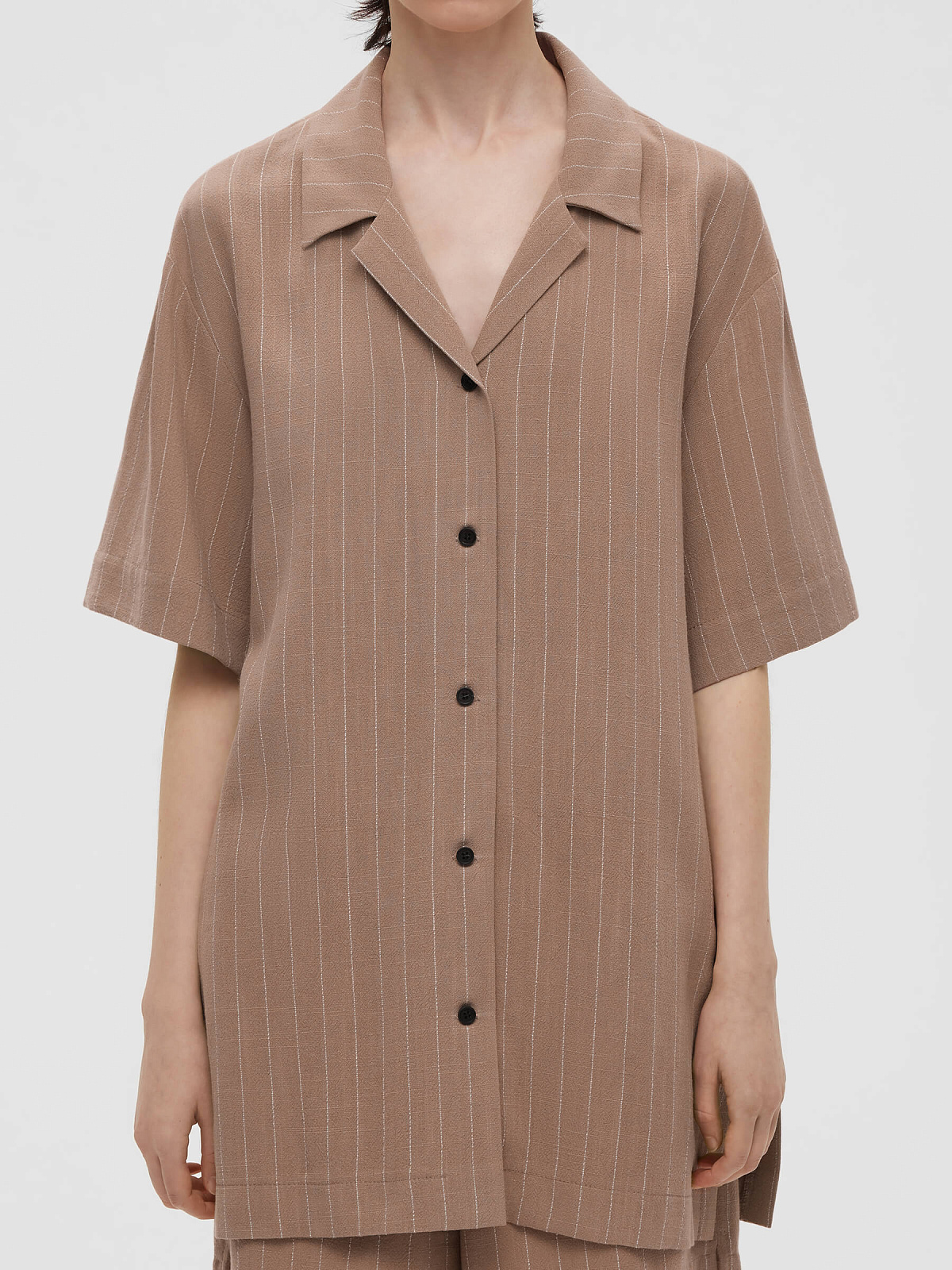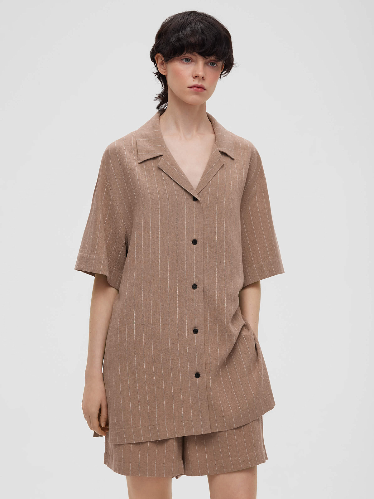 Рубашка свободного кроя с коротким рукавом 0202, бежево-коричневый