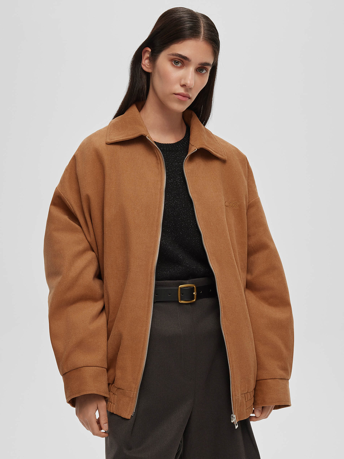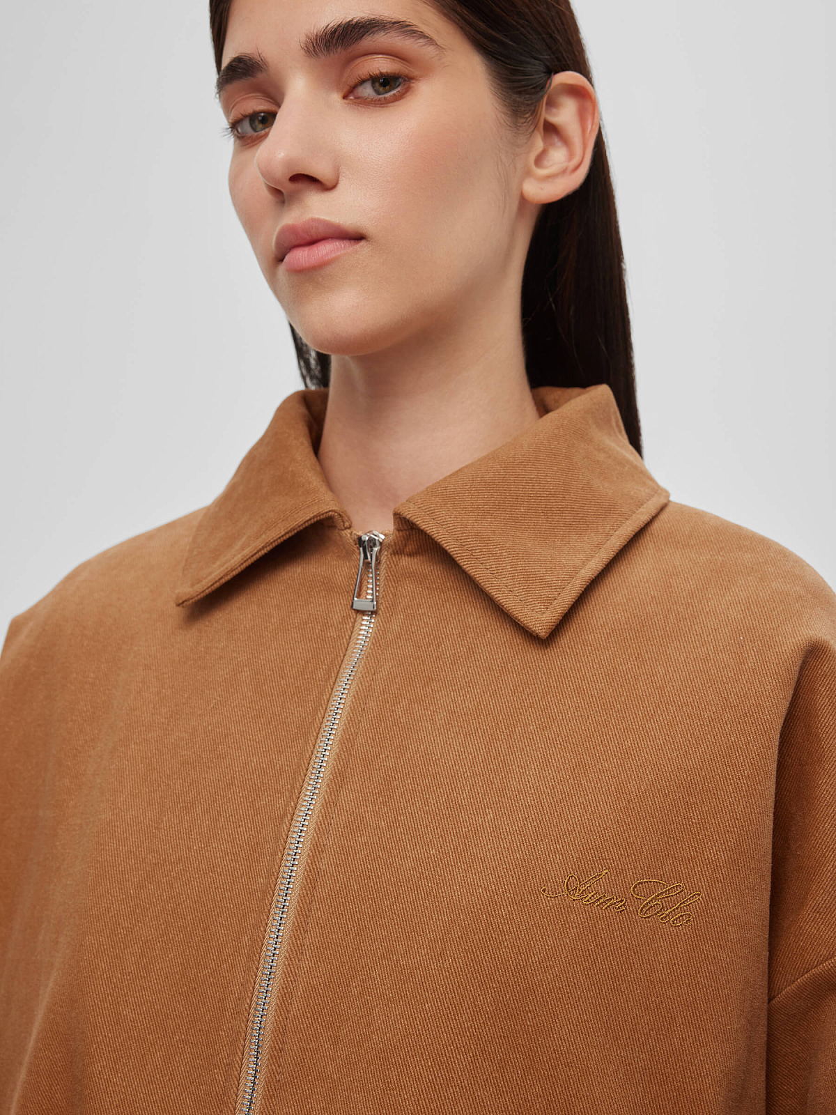 Бомбер утепленный из денима с вышивкой 0207, терракотовый