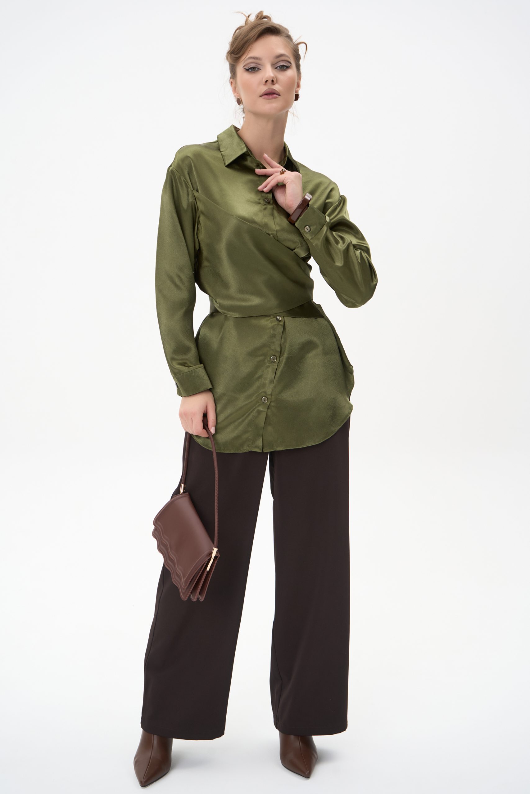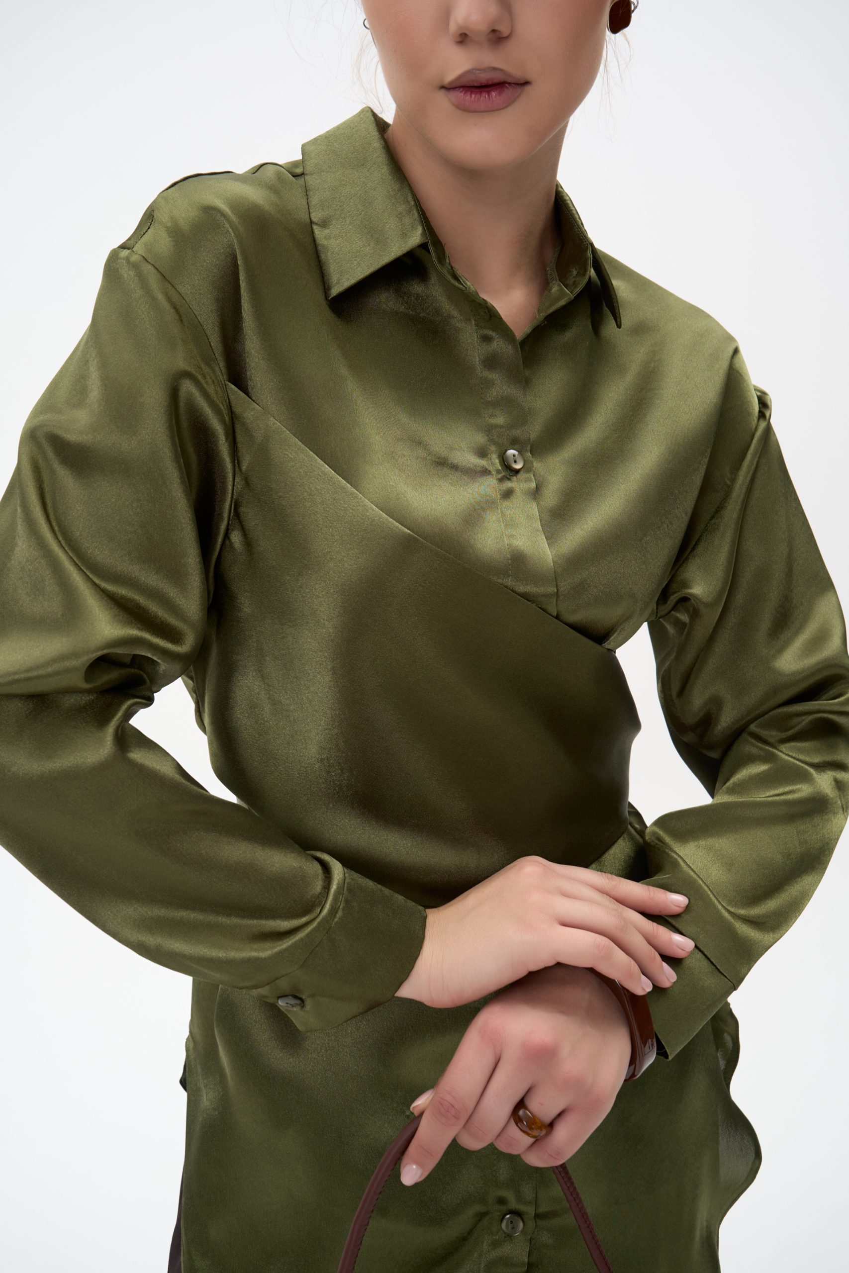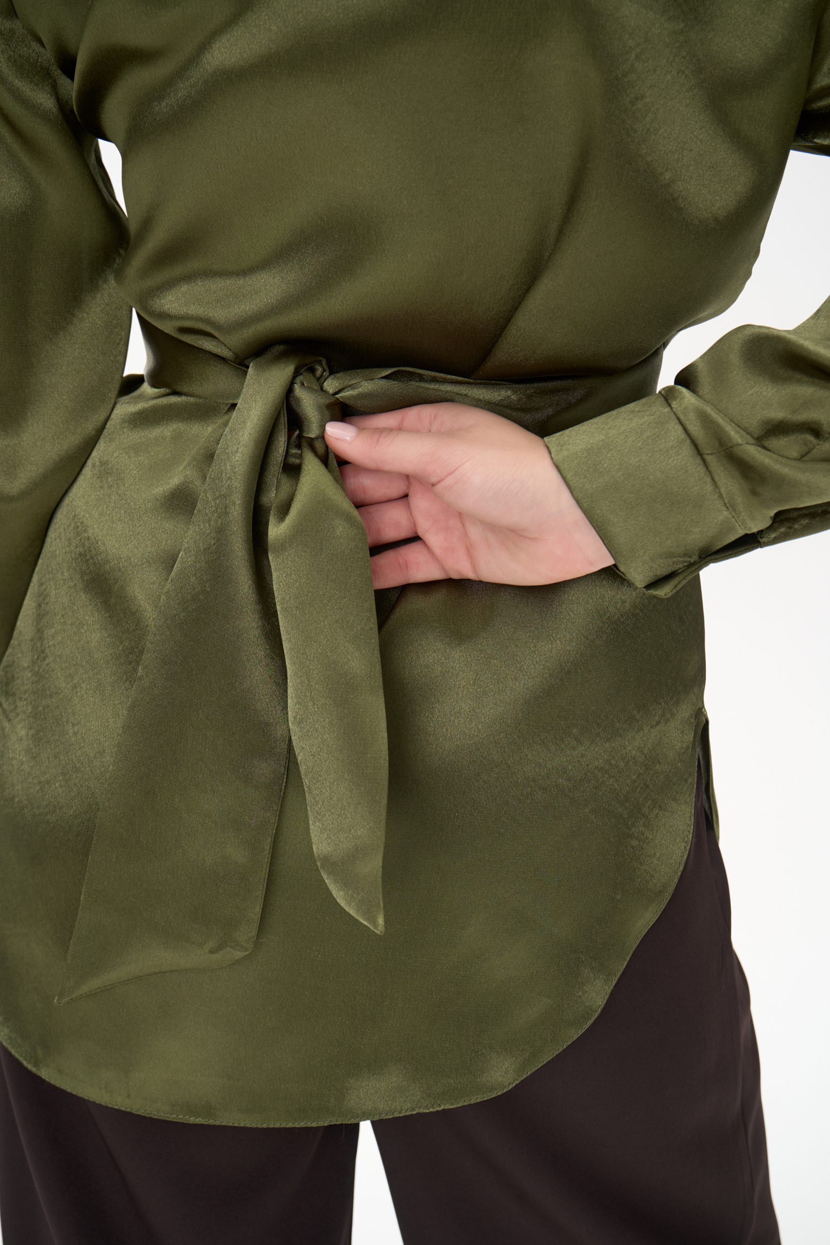 Рубашка «Оливия» — пример того, как классика может звучать по-новому. Мы создали модель, которая сохраняет строгие линии и при этом подчёркивает женственность за счёт продуманной драпировки и регулируемых завязок. Материал –  плотный сатин высокого качества , ткань мягко ложится по фигуре, имеет лёгкий благородный блеск и не теряет форму даже после множества стирок.