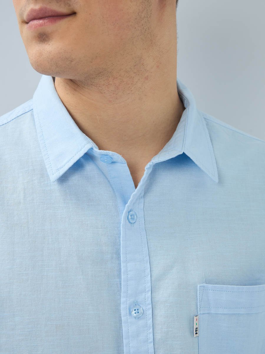 Рубашка изготовлена из высококачественной смесовой ткани (лен с хлопком), мягкая и приятная на ощупь. 55%Хлопок, 45%Лен