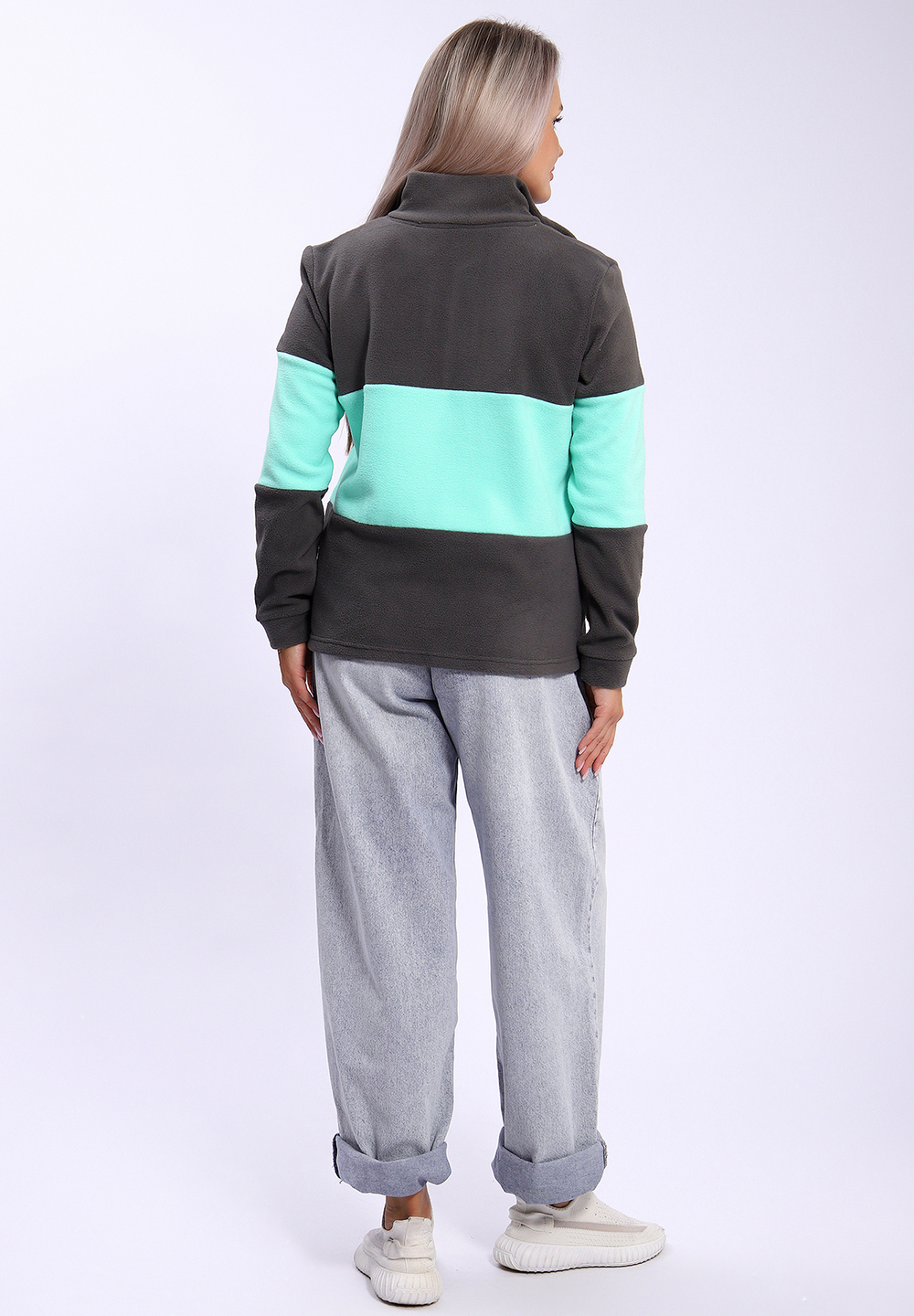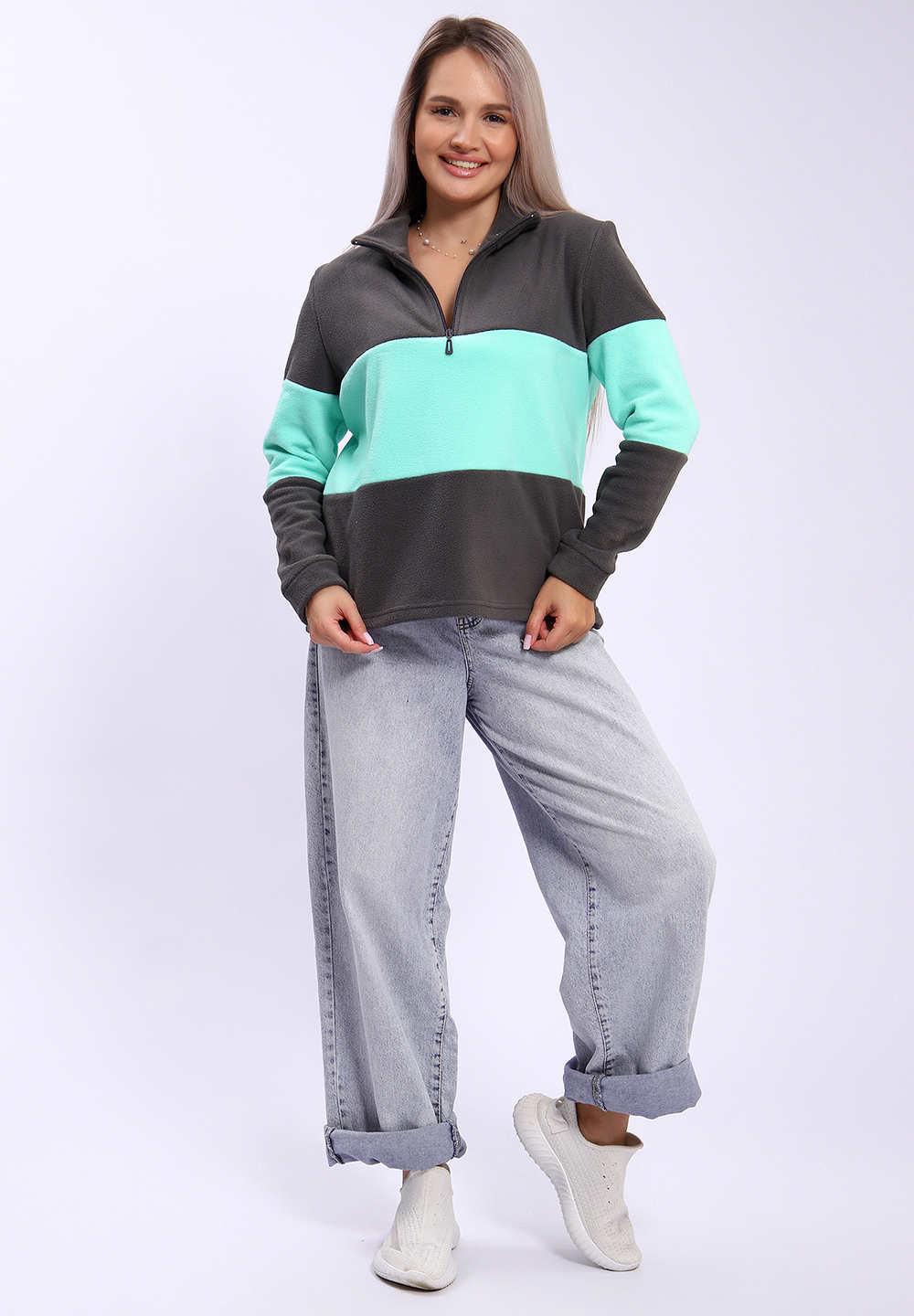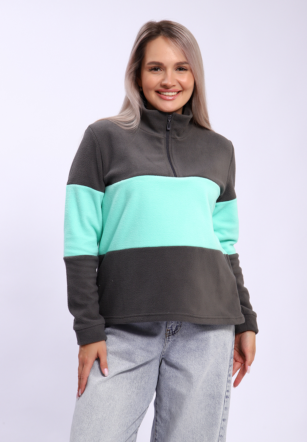Утепленная толстовка с воротником-стойкой и молнией. Изготовлена из мягкого флиса, обеспечивающего тепло и комфорт. На груди расположена цветная вставка в стиле колор-блок, придающая изделию яркий и современный вид. Идеальный выбор для холодных дней, сочетающий уют и стиль. Цвет: серый+ментол;темно-синий+серый; Материал: флис;флис; Состав: п/э 100%.