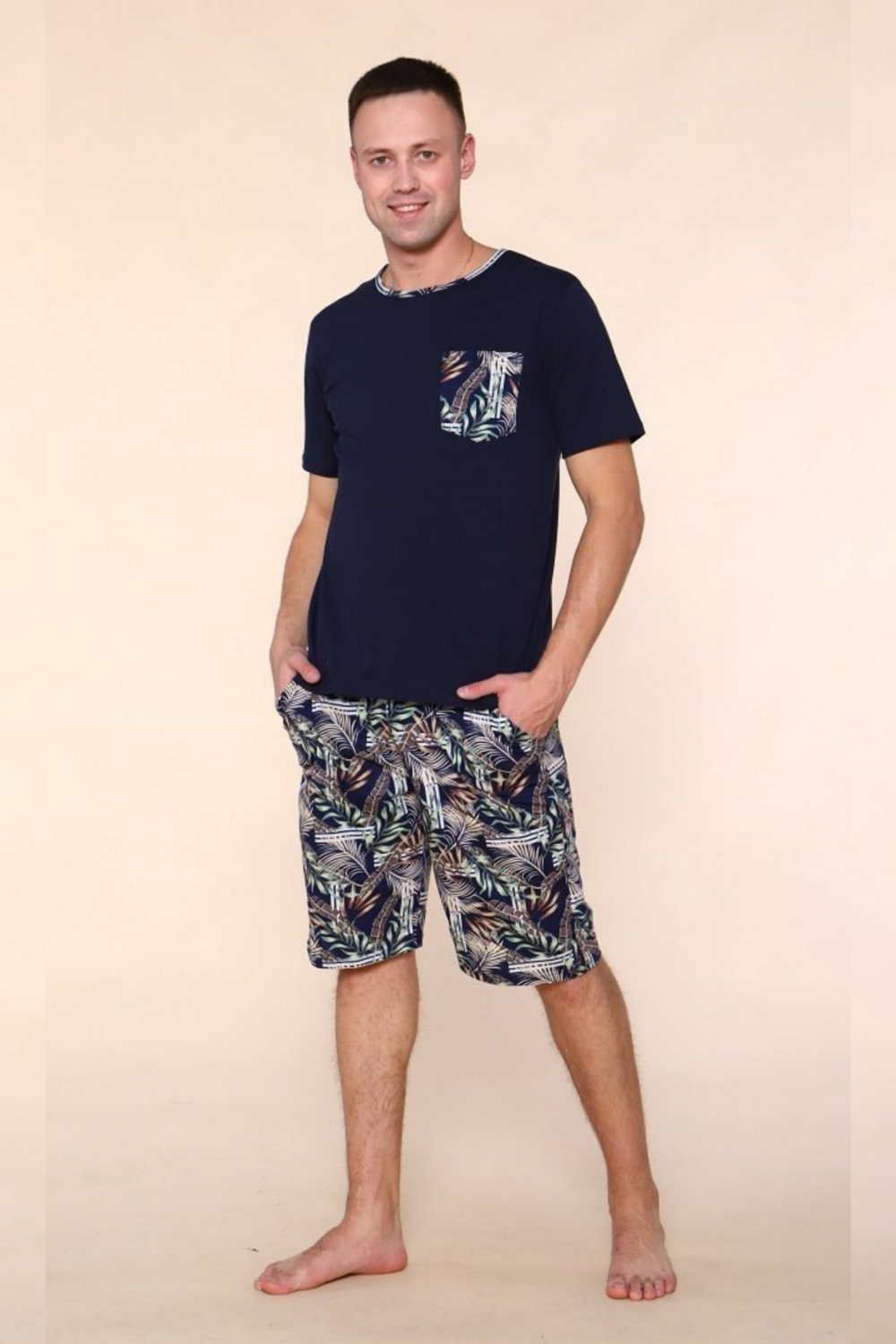 Этот мужской костюм из 100% хлопка (кулирная гладь) практичное решение для дома и летних прогулок в 2026 году. Сочетание натуральной ткани и актуального растительного принта делает его востребованным в категории домашняя одежда и отдых. Цвет: темно-синий; Материал: кулирка;кулирка; Состав: хлопок 100%.