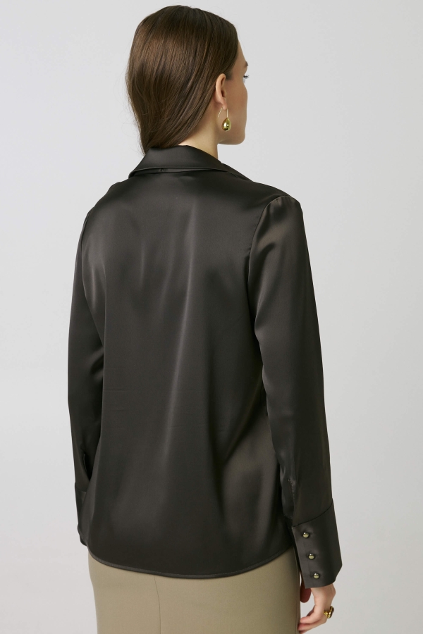 Элегантная рубашка из фактурного атласа высокого качества. Модель прямого силуэта. Воротник рубашечный. Длинный рукав на широкой манжете. Застёжка на петли и пуговицы. В комплекте шарф-галстук.