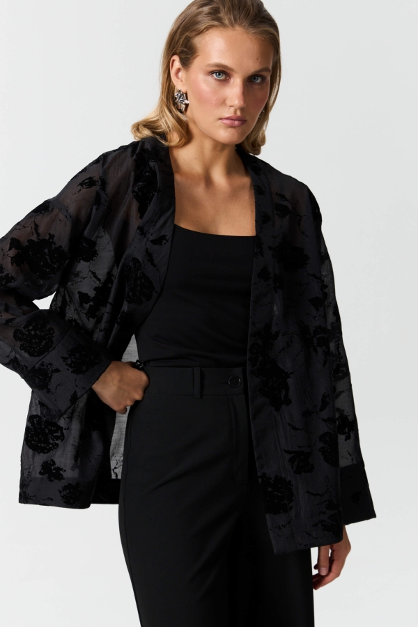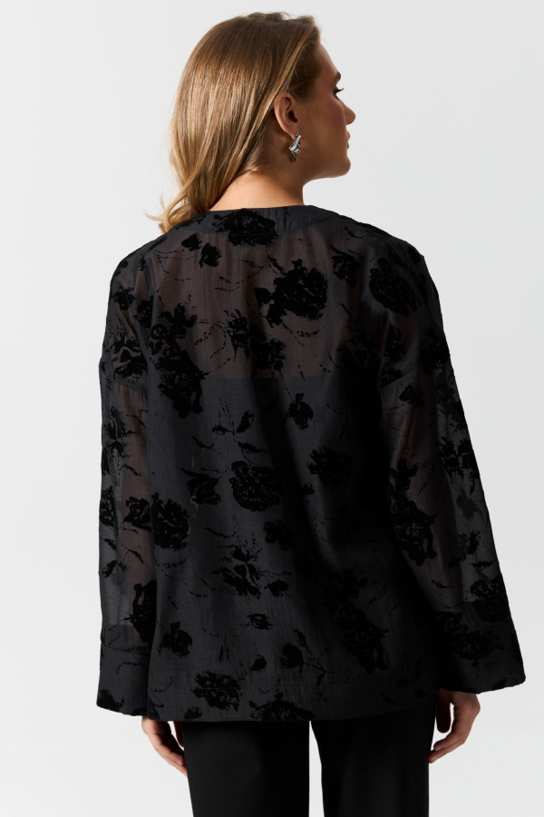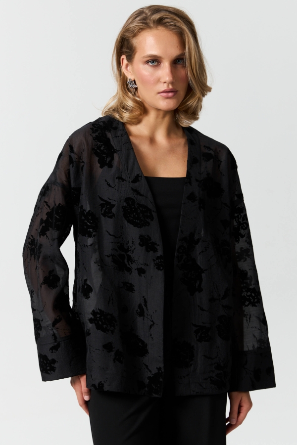 Блуза-кардиган из органзы с объемным фактурным принтом. Модель свободного силуэта со спущенным плечом на поясе. По переду запах. Рукав длинный. Пояс в комплекте. Рекомендуем добавить топ из вискозного трикотажа арт. С2589-1