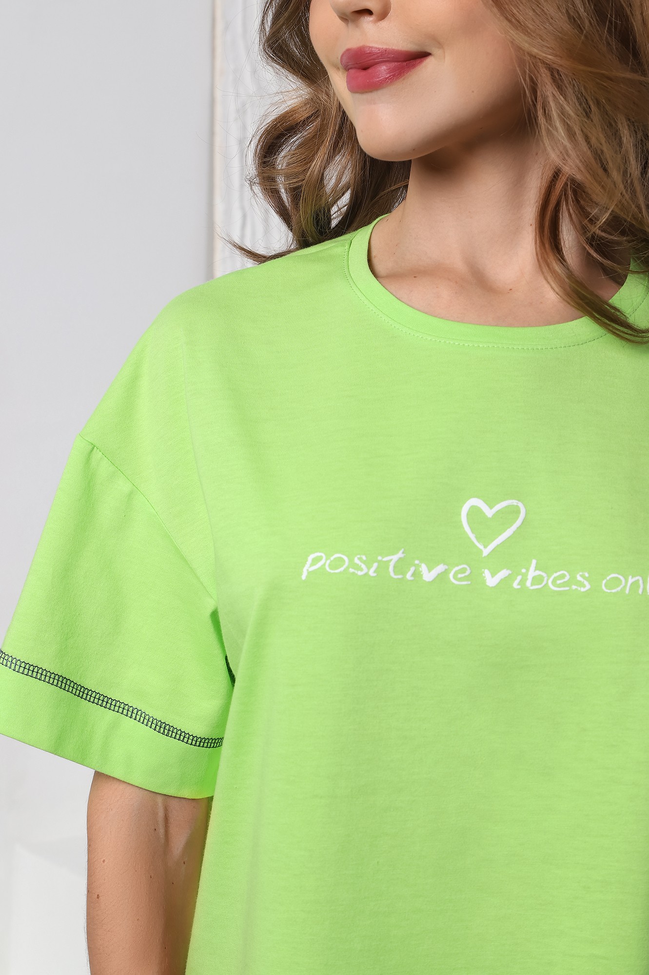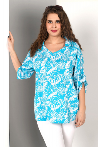 втачными рукавами, горловиной овальной формы и принтом на полочке, выполненным в