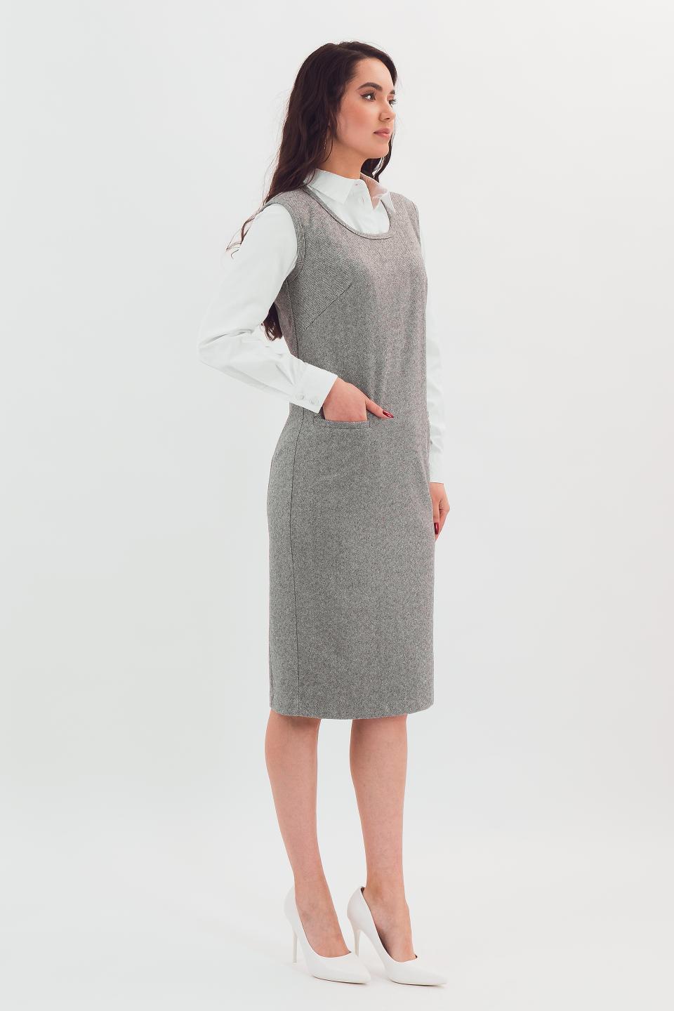 Описание: Трикотажный сарафан имеет комфортную посадку за счет вытачек и небольшие функциональные карманы. Такая модель сарафана стильно смотрится с классическими блузами, водолазками и рубашками.