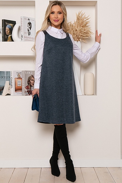 Сарафан трапецевидного силуэта из трикотажного полотна с лямками из эко кожи.