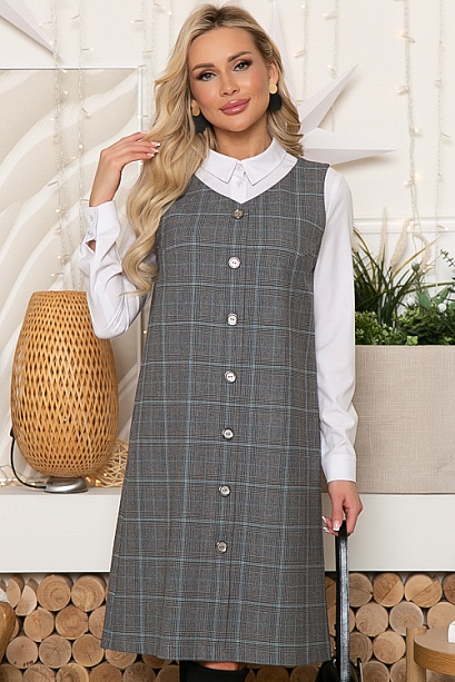 Сарафан А-образного силуэта из комфортной высококачественной костюмной ткани.(ткань производство Турция).Перед сарафана с имитацией застежки на пуговицы.