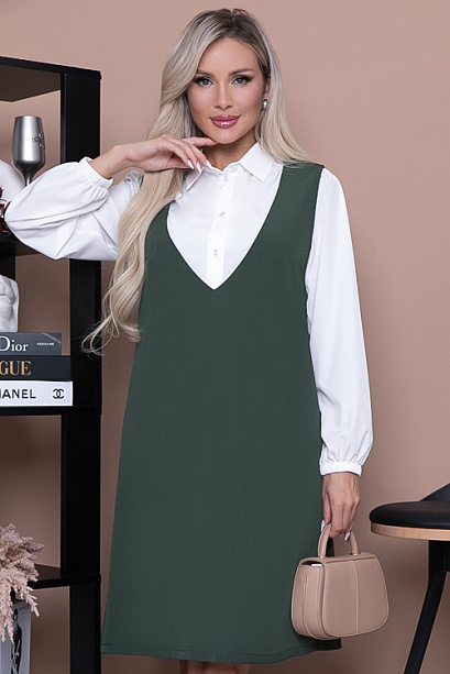 Сарафан трапецевидного силуэта из костюмной ткани.