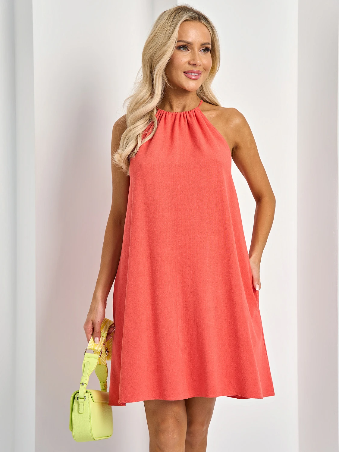 Платье свободного силуэта из льна.