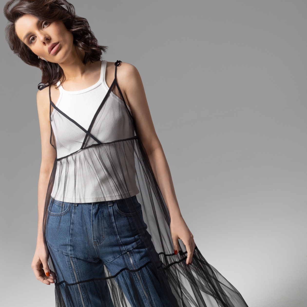 Выделяться – ваш самый прокаченный навык. Сарафан из тончайшей сетки от CHARUTTI впишется в ваш гардероб, став компаньоном множеству образов. Разнообразие, масштаб которого трудно осознать. Сочетайте с джинсами и платьями, выбирайте для встреч с друзьями и для светских выходов. Сарафан расклешенный из мягкой сетки. Изделие полностью прозрачное. Идеальная обработка швов. Изящные завязки на плечах изделия. Ошибка при загрузке данных! (https://charutti.ru/upload/video-site/00000011676_video_site.mp4)