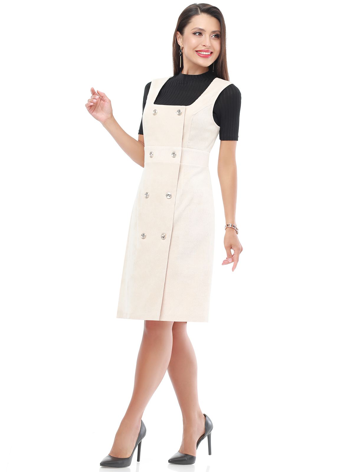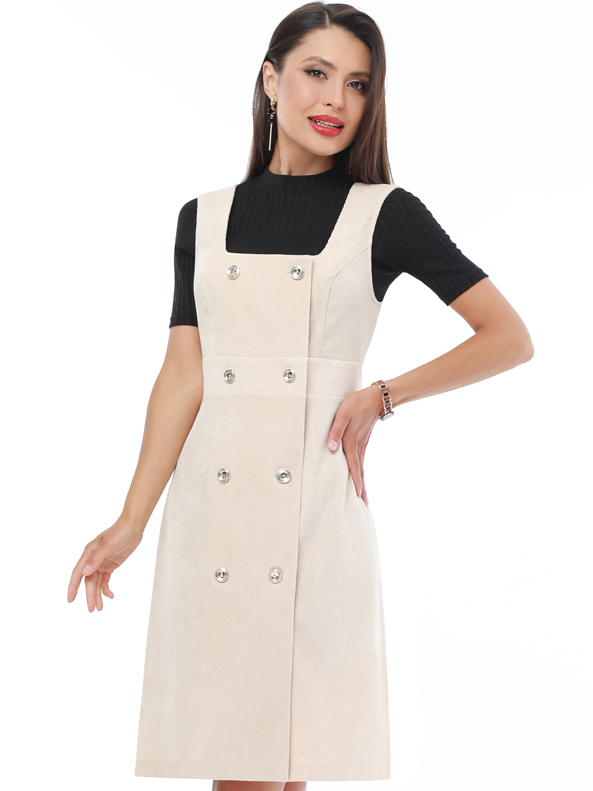 Вельветовый сарафан с пуговицами — стильная модель, которая разнообразит гардероб. А-силуэт подчеркивает фигуру, плавно расширяется книзу и скрывает проблемные зоны. Вырез каре и широкие бретели смотрятся оригинально. Застежка на вертикальный ряд пуговиц позволяет без труда снимать и надевать изделие, а заодно визуально вытягивает силуэт. Сарафан выполнен из плотного, приятного на ощупь микровельвета, который хорошо держит форму и согревает в холодный сезон. Пуговицы с деликатным блеском делают образ более нарядным. Сарафан можно носить поверх блузок, свитеров, водолазок, футболок, позволяя создать множество эффектных образов. Модель из вельвета требует бережного ухода. Рекомендуется стирать изделие при температуре не более 30 градусов отдельно от других вещей, не выкручивать и сушить на плечиках. При небольших загрязнениях достаточно пройтись по сарафану влажной губкой с моющим средством.