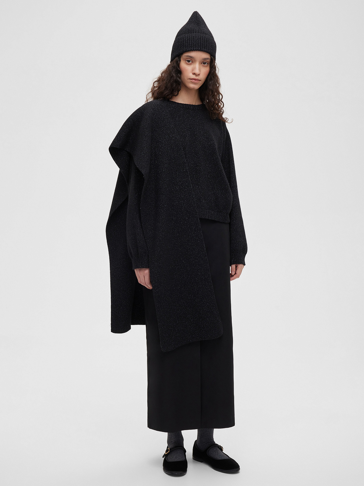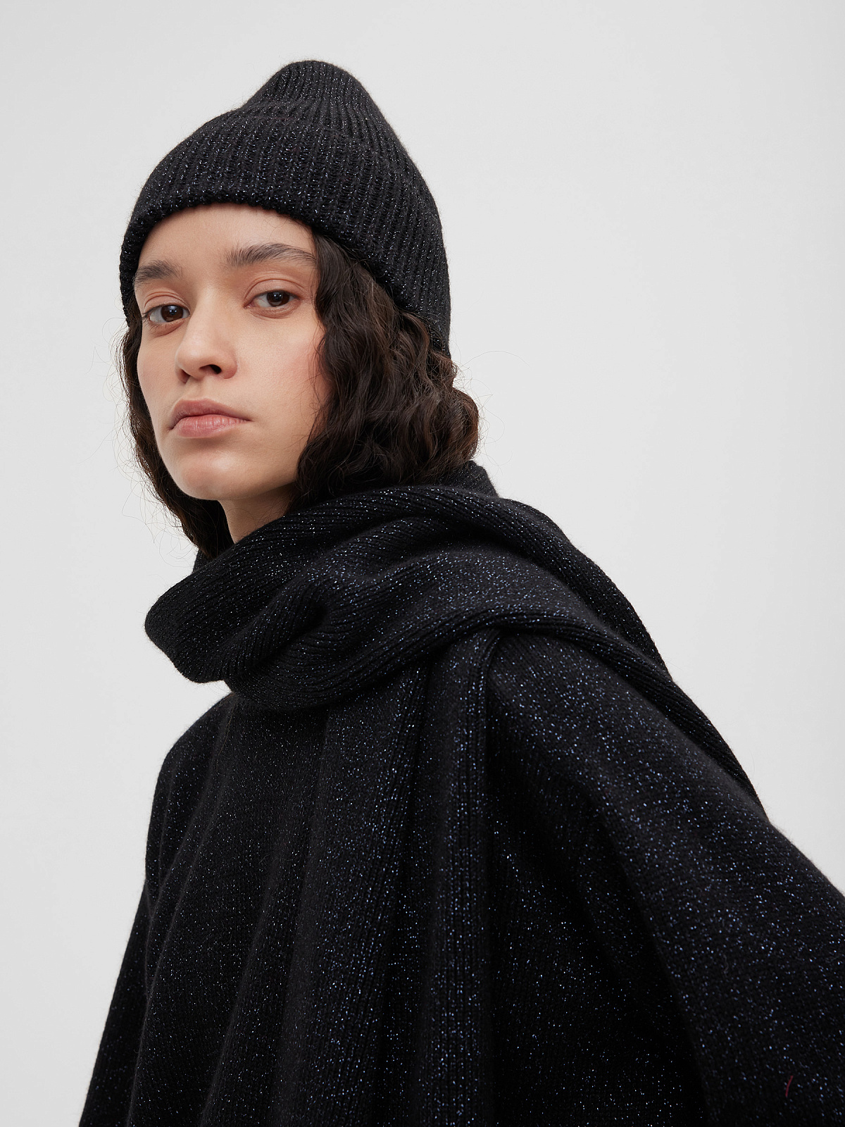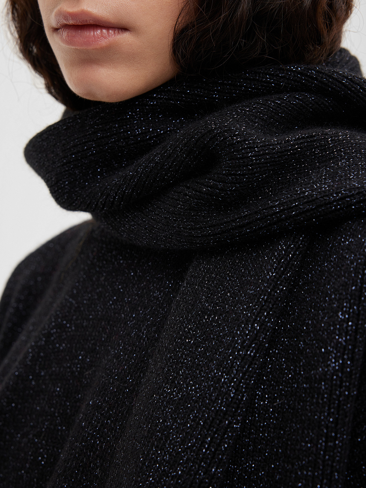 Шарф гладкой вязки с ангорой с люрексом, черный
