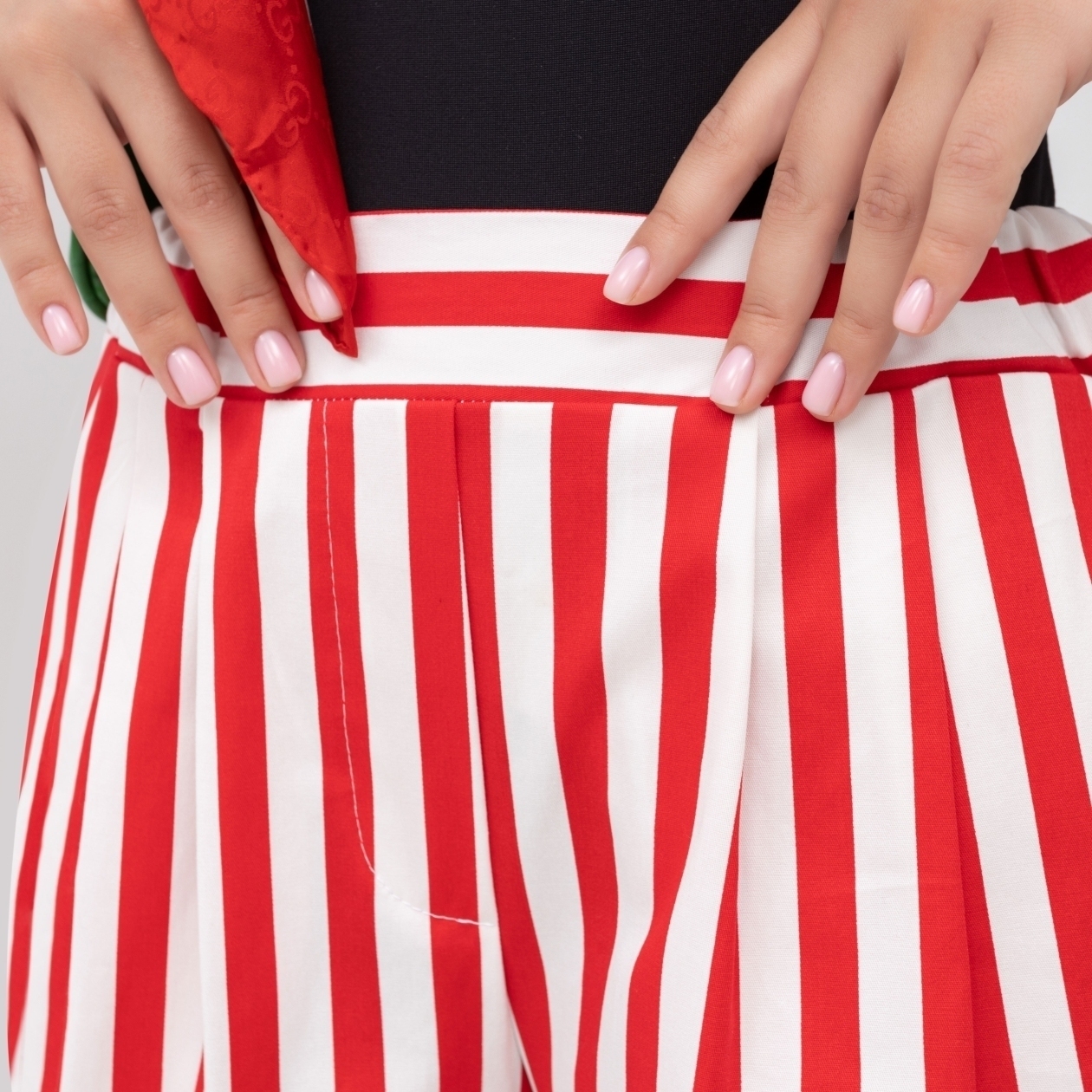 Сейчас, когда полоска вновь на пике популярности, эти шорты станут идеальным выбором для тех, кто стремится оставаться в тренде. Принт в полоску добавляет игривости и динамики в любой образ, а благодаря универсальности модели, шорты можно легко сочетать с различными элементами гардероба. Носите их с однотонным верхом для создания расслабленного образа или соедините с жакетом Королева глянца для более формального стиля. Это делает их идеальным выбором для магазинов, которые хотят предложить своим покупателям нечто особенное.