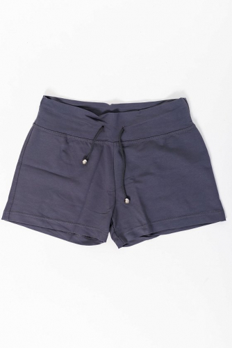 Женские шорты выполнены из футер петли ярких расцветок. Силуэт облегающий, пояс широкий со шнурком. Без карманов.