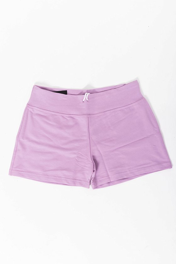 Женские шорты выполнены из футер петли ярких расцветок. Силуэт облегающий, пояс широкий со шнурком. Без карманов.