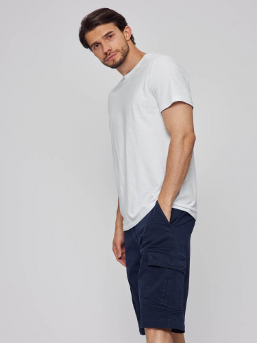 Мужские шорты-карго. Посадка Comfort fit (свободные по бедру), средняя посадка по талии спереди и высокая сзади, прямые к низу. Застежка на молнии. Шорты имеют боковые косые карманы, по бокам накладные карманы с клапаном застегивающиеся на  пуговицу, сзади имитация  прорезных карманов. Выполнены из слабоэластичной плотной ткани gabardine stretch. Крашение Garment dayed, т.е. покрашены в готовом виде после пошива. 98%Хлопок, 2%Эластан