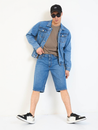 Мужские модные джинсовые шорты с пятью карманами. Посадка Regular fit (полуоблегающие по бедру), Высокая талия  спереди и сзади.Застежка на молнии. Выполнены из облегченной хлопковой  ткани denim. Светлая стирка "stone wash"с  осветлением. 100%Хлопок