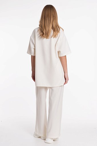 Брюки свободного силуэта не сковывают движений, а складки спереди по талии придают модели оригинальный вид. Широкий пояс на резинке обеспечивает комфортную посадку. Боковые карманы всегда будут под рукой.