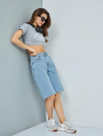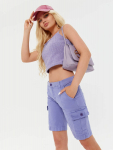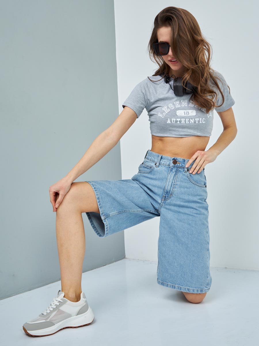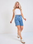 Женские шорты с пятью карманами. Посадка Comfort fit (свободные по бедру),  высокая талия спереди и сзади. Свободные по всей длине, широкий низ. Застежка на молнии.  Выполнены из x/б ткани denim. Классическая средняя машинная стирка с камнями (stone wash). . 100%Хлопок