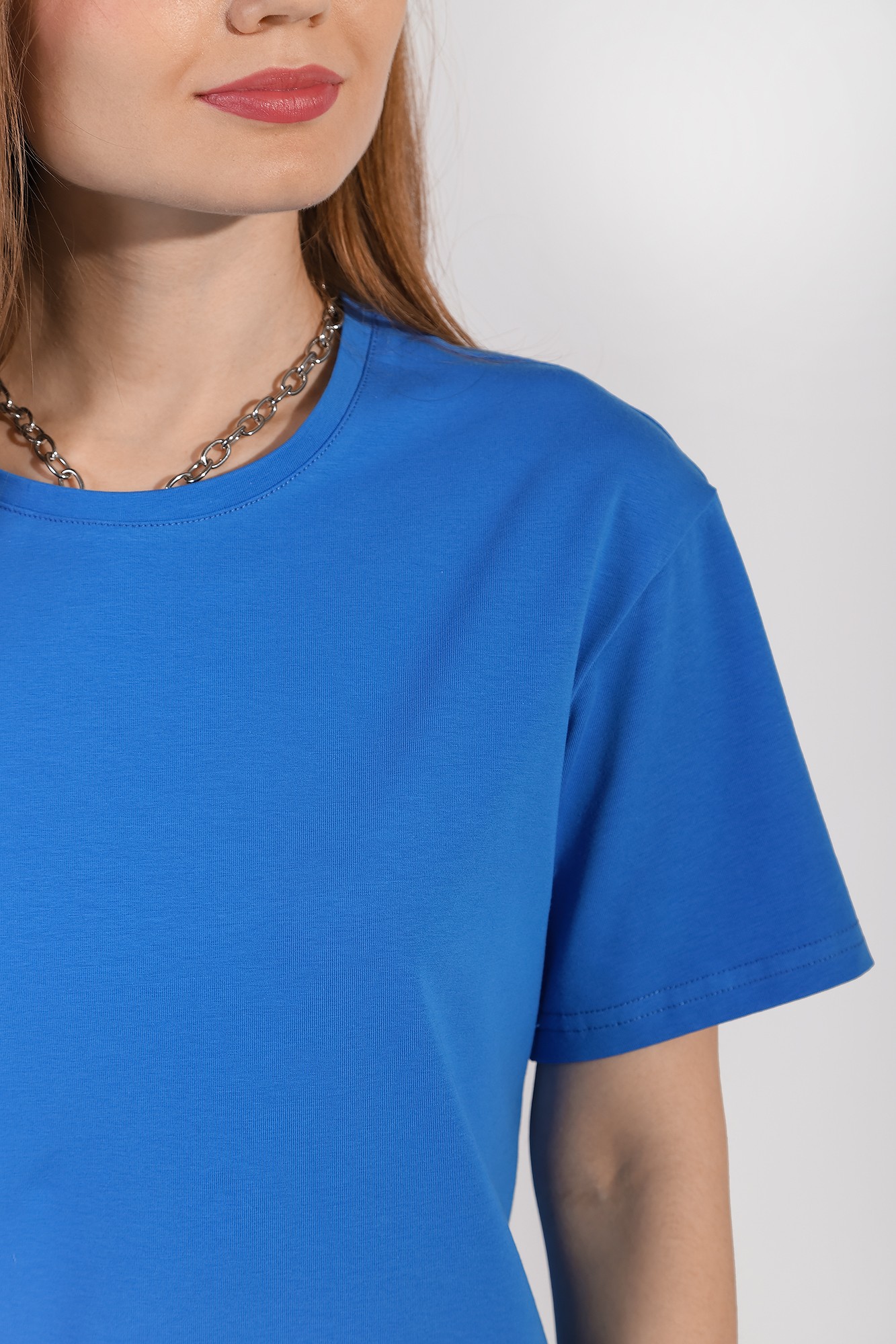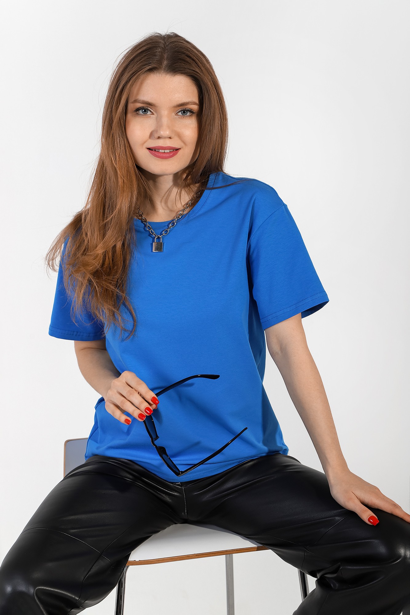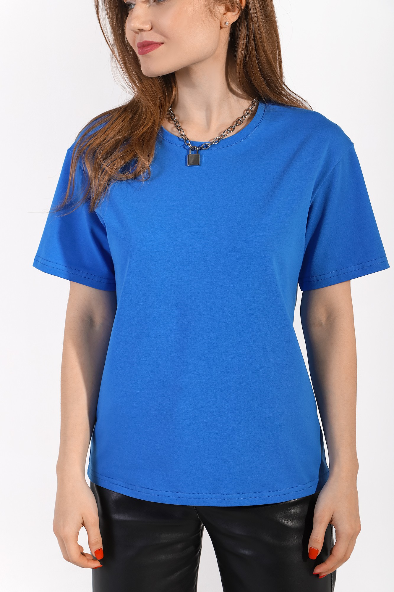 Футболка из гладкокрашеного трикотажного полотна «кулирка с лайкрой», классического покроя, с короткими втачными рукавами, горловиной овальной формы, обработанной втачной планкой.