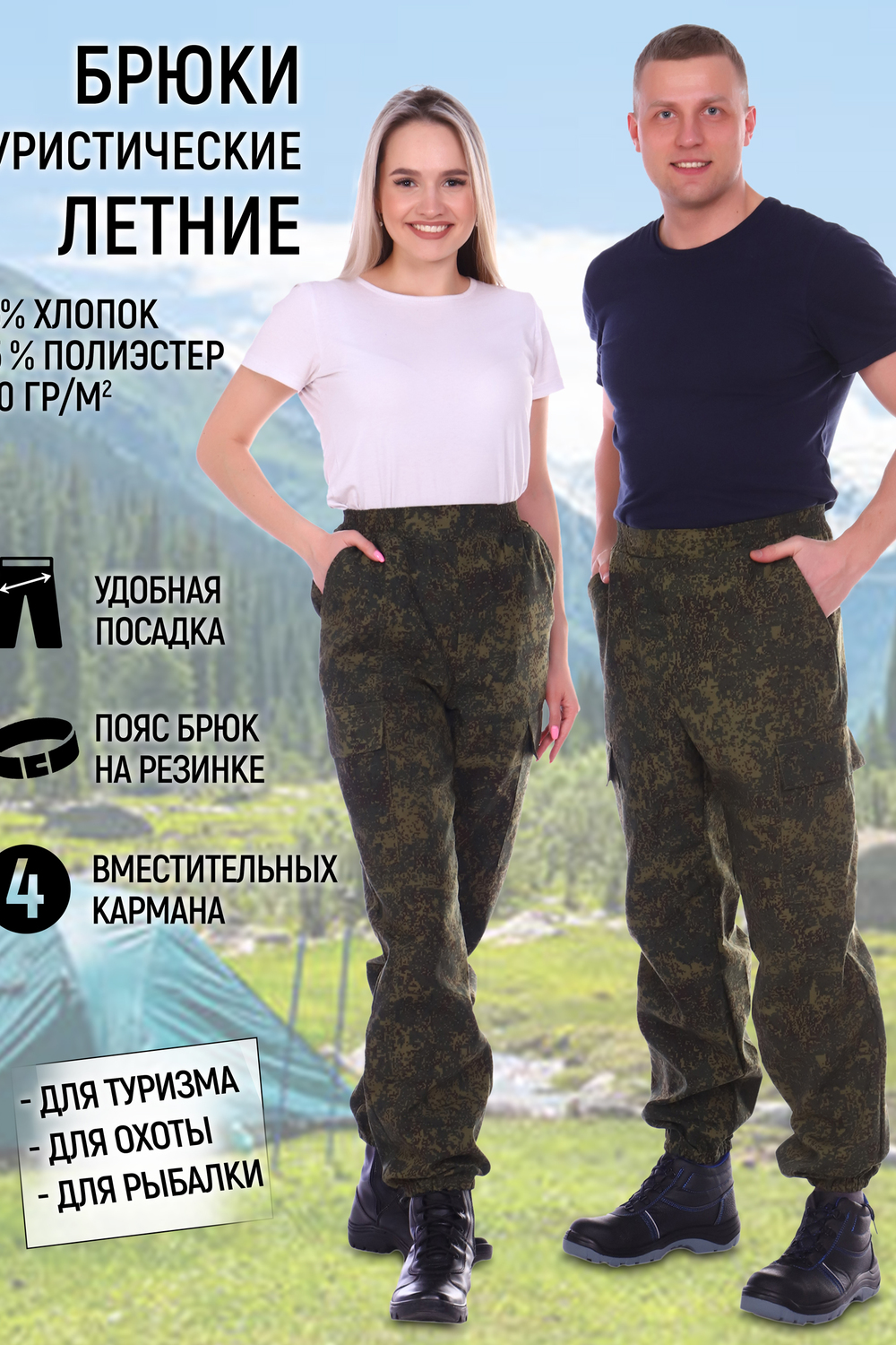 Брюки спортивные летние туристические. Бренд СКЕЛА предлагает штаны туристические, изготовленные из 35% натурального хлопка и 65% полиэстера. Брюки хорошо сидят, не сковывают движения, легкие и удобные. Универсальные и удобные с прорезными и накладными карманами. Пояс на эластичной резинке, что обеспечивает максимальный комфорт. Брюки представлены в камуфляжном цвете расцветки Пиксель/цифра, которая неразличима глазом на фоне летней природы умеренной полосы. Прекрасно подойдет для охоты, рыбалки, туризма и прогулок, а также для хозяйственных работ, для строительных работ, для работы в сервисе и прочих работ. Модель унисекс. Представлен широкий размерный ряд, включающий большие размеры. По стандартам для спецодежды длина брюк измеряется от шва втачивания пояса (без учета его ширины) до низа брюк.