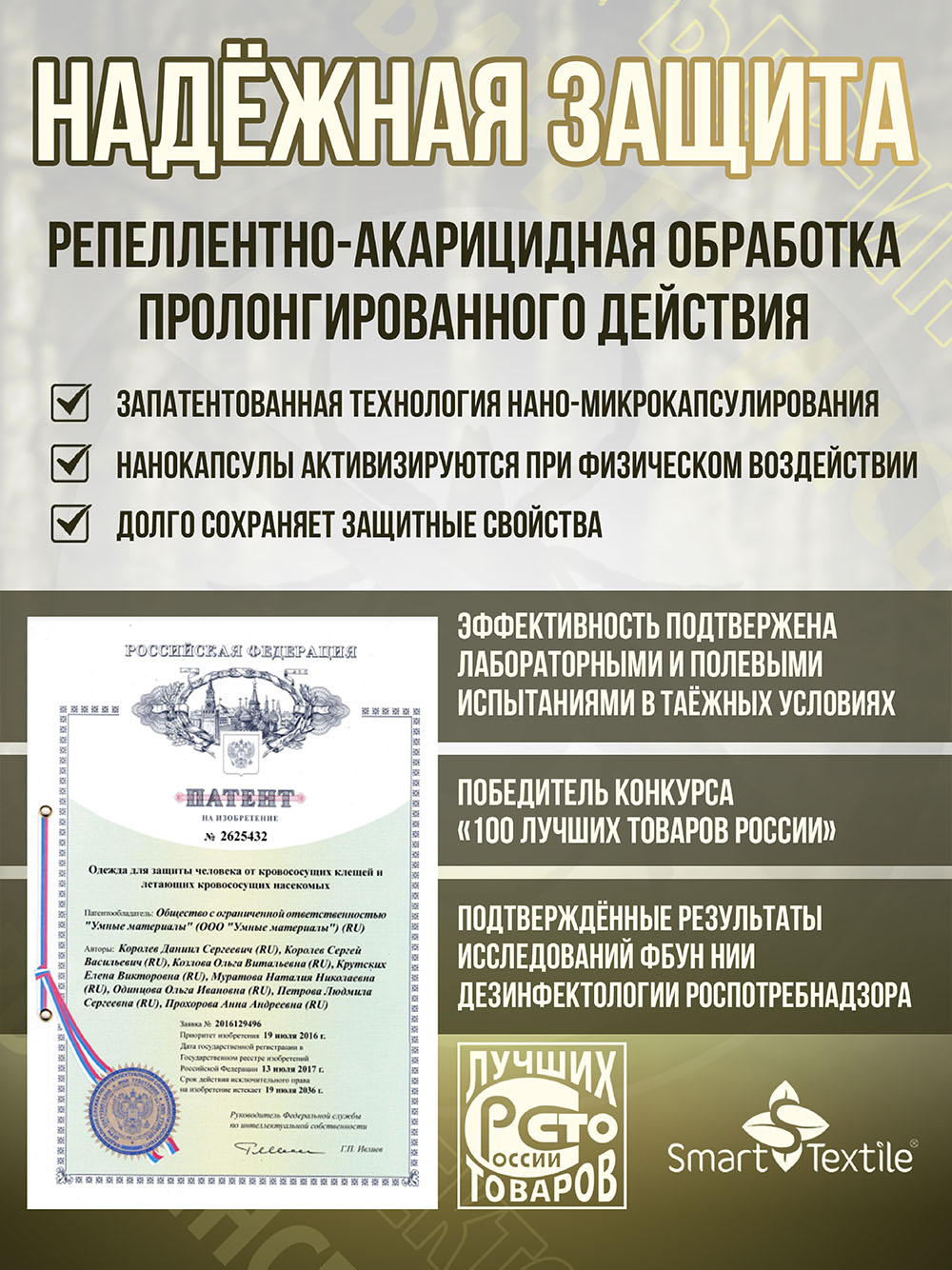 Репеллетентно-аккарицидный костюм Барьер Инсекто это ваш надёжный защитник от клещей и других насекомых в природных условиях! Цвет: хаки; Материал: палаточное полотно;палаточное полотно; Состав: 100% хлопок.
