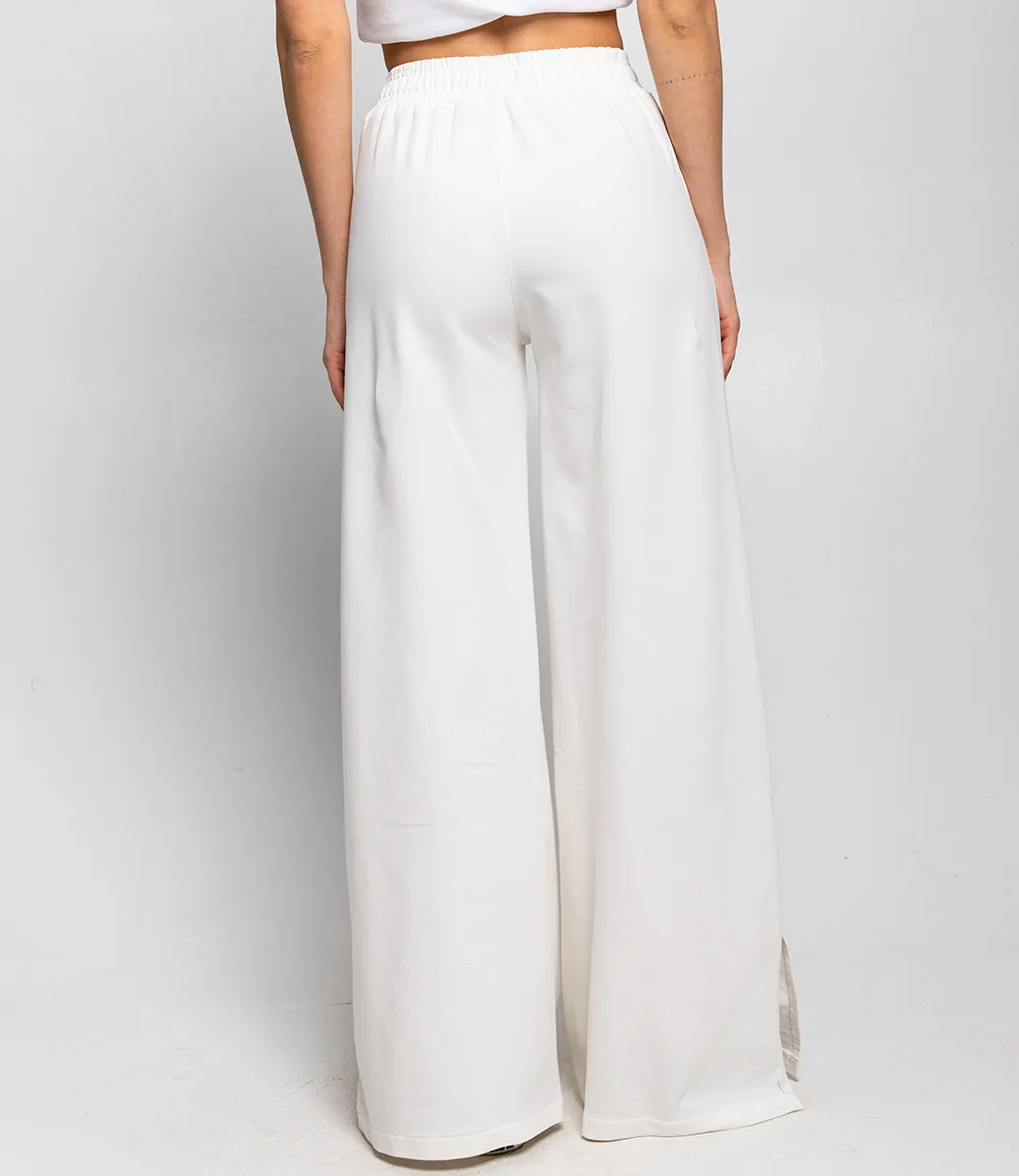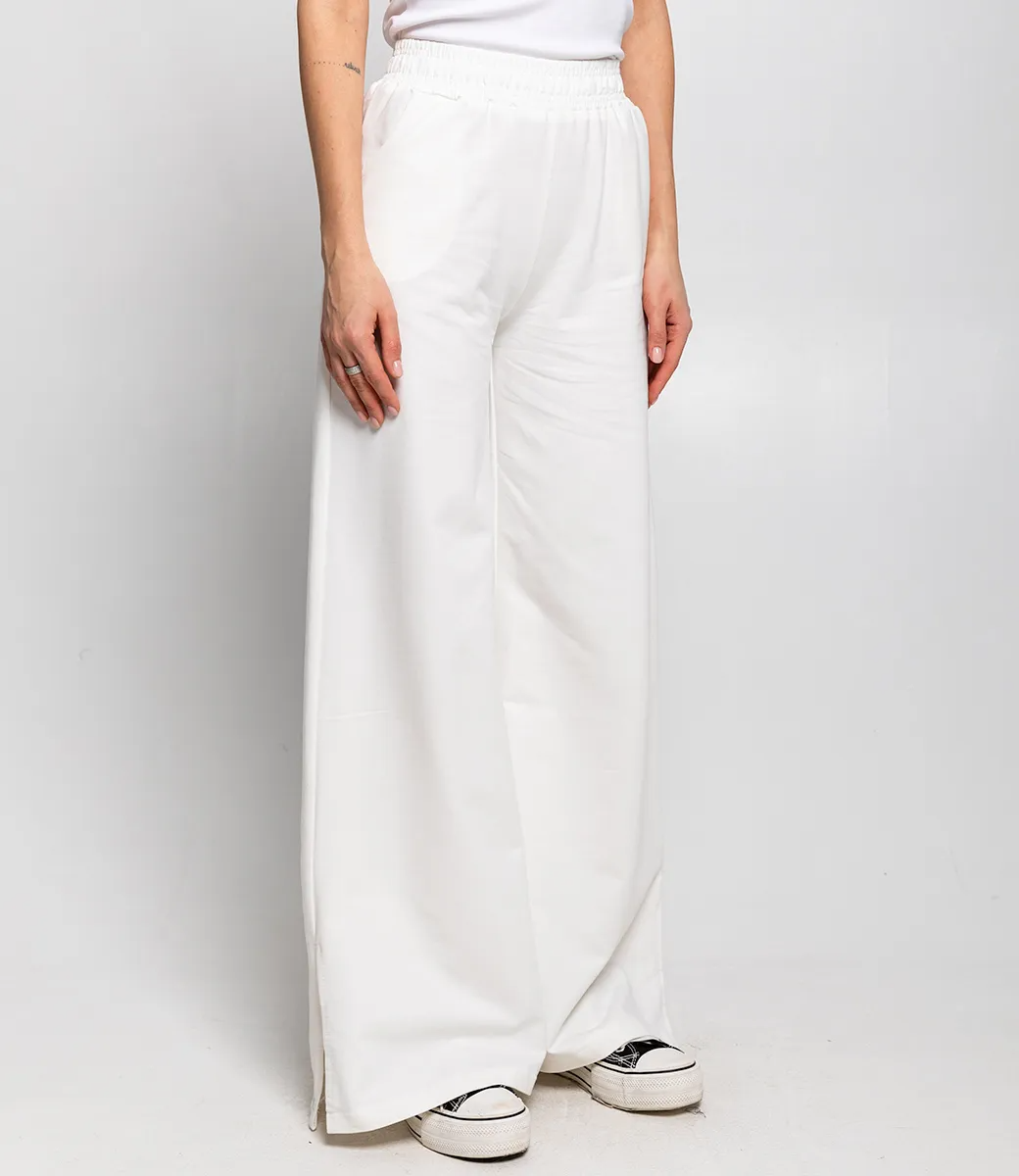 Свободные спортивные брюки с поясом на резинке и разрезами на штанинах станут практичной и удобной базовой вещью в гардеробе. В составе данного изделия преобладает хлопок, поэтому брюки приятны к телу и позволяют коже дышать. Рост модели: 164, параметры: 83-61-89.