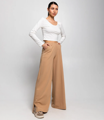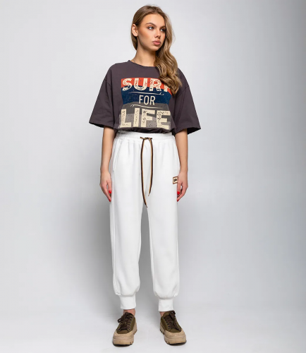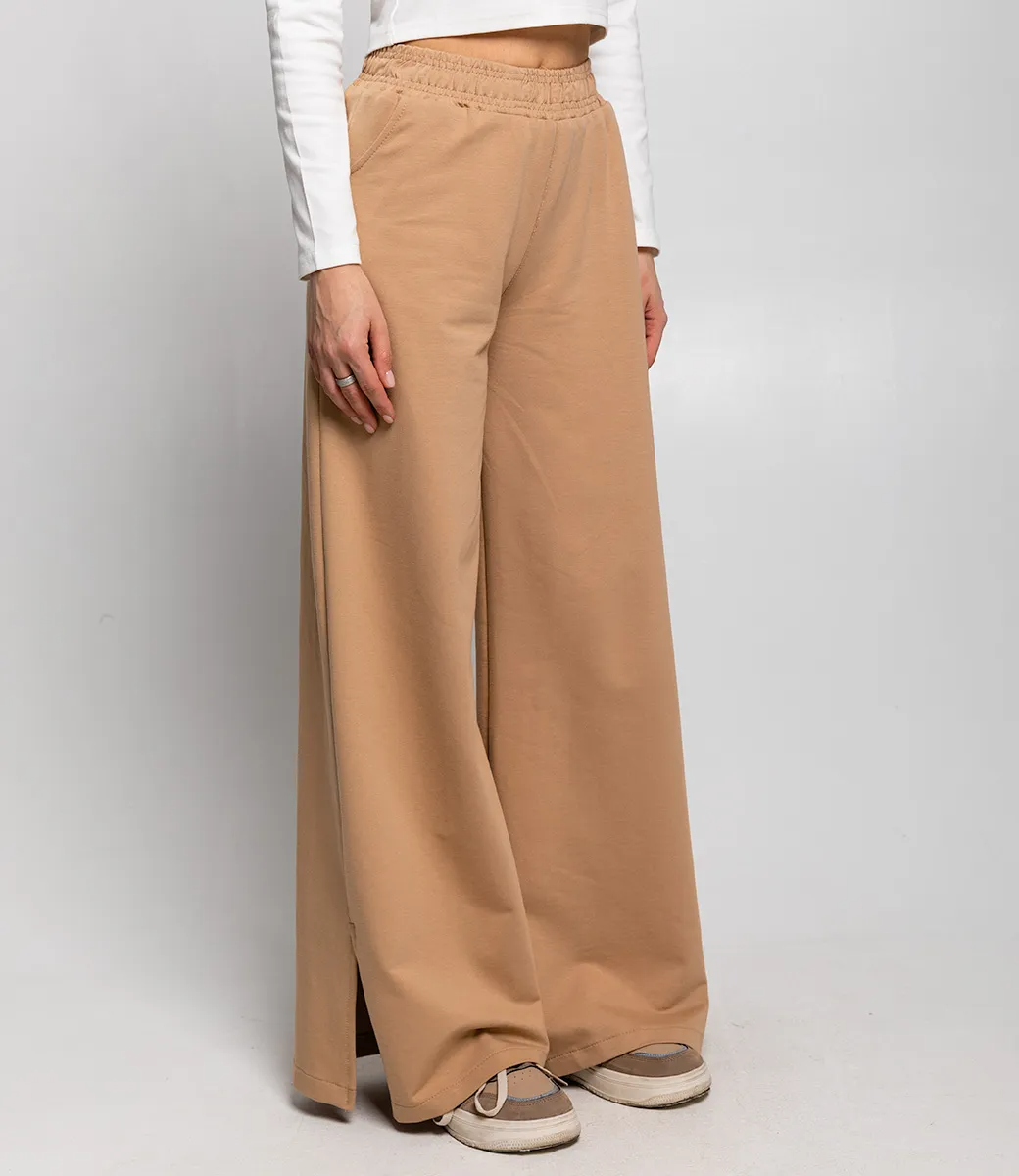 Свободные спортивные брюки с поясом на резинке и разрезами на штанинах станут практичной и удобной базовой вещью в гардеробе. В составе данного изделия преобладает хлопок, поэтому брюки приятны к телу и позволяют коже дышать. Рост модели: 164, параметры: 83-61-89.