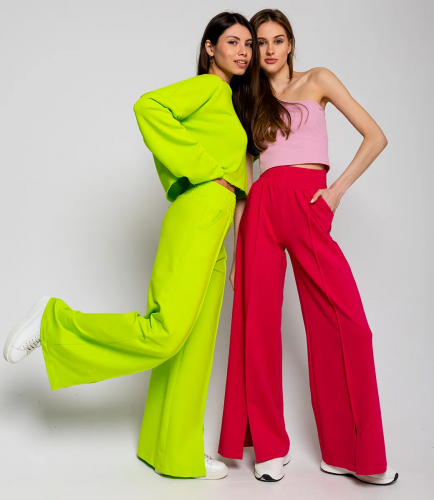 Широкие брюки вписываются в любой стиль- кэжуал, спортивный, элегантный, уличный- все будет зависеть от аксессуаров, обуви и верха. Спортивные брюки подходит на любой тип фигуры, а благодаря хлопку в составе удобны в носке.