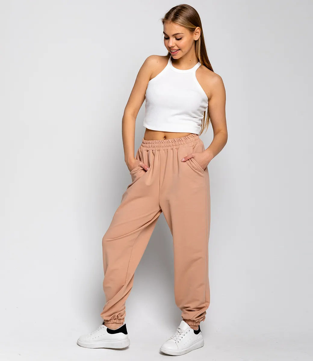 Брюки вписываются в кэжуал, спортивный, уличный стиль - все будет зависеть от аксессуаров, обуви и верха. Спортивные брюки подходят на любой тип фигуры, а благодаря хлопку в составе удобны в носке.
