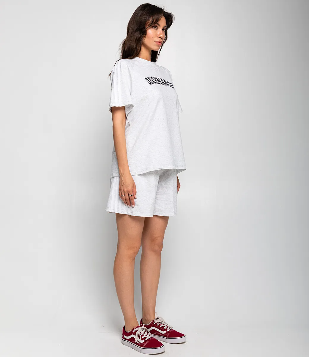 Спортивный костюм станет отличным дополнением вашего ассортимента и привлечет внимание покупателей своей энергией и динамичностью. Футболка свободного кроя с коротким рукавом, обеспечивает комфорт и свободу движений. На передней части — яркий принт в виде надписи. Шорты удобной длины, доходящие до середины бедра, с эластичным поясом. Подходят для активных движений. Изготовленный из высококачественных материалов, состоящий из 90% хлопка и 10% полиэстера, костюм обеспечивает максимальный комфорт. Ткань отличается мягкостью и воздухопроницаемостью, что позволит вашим клиентам чувствовать себя отлично даже в самые активные дни. На странице сайта предоставлена таблица размеров, что упростит покупку и поможет выбрать идеальный вариант без лишних временных затрат. Установленная цена делает этот костюм доступным для широкой аудитории, гарантируя его популярность среди клиентов. Предложите своим покупателям этот яркий и стильный спортивный костюм, который станет отличным элементом их гардероба и поднимет настроение в любой ситуации! Рост модели 164 см., 83-61-89.