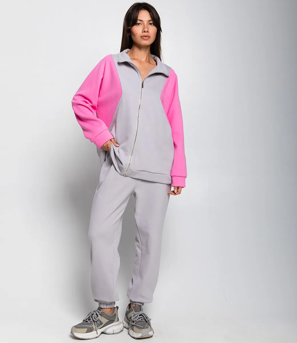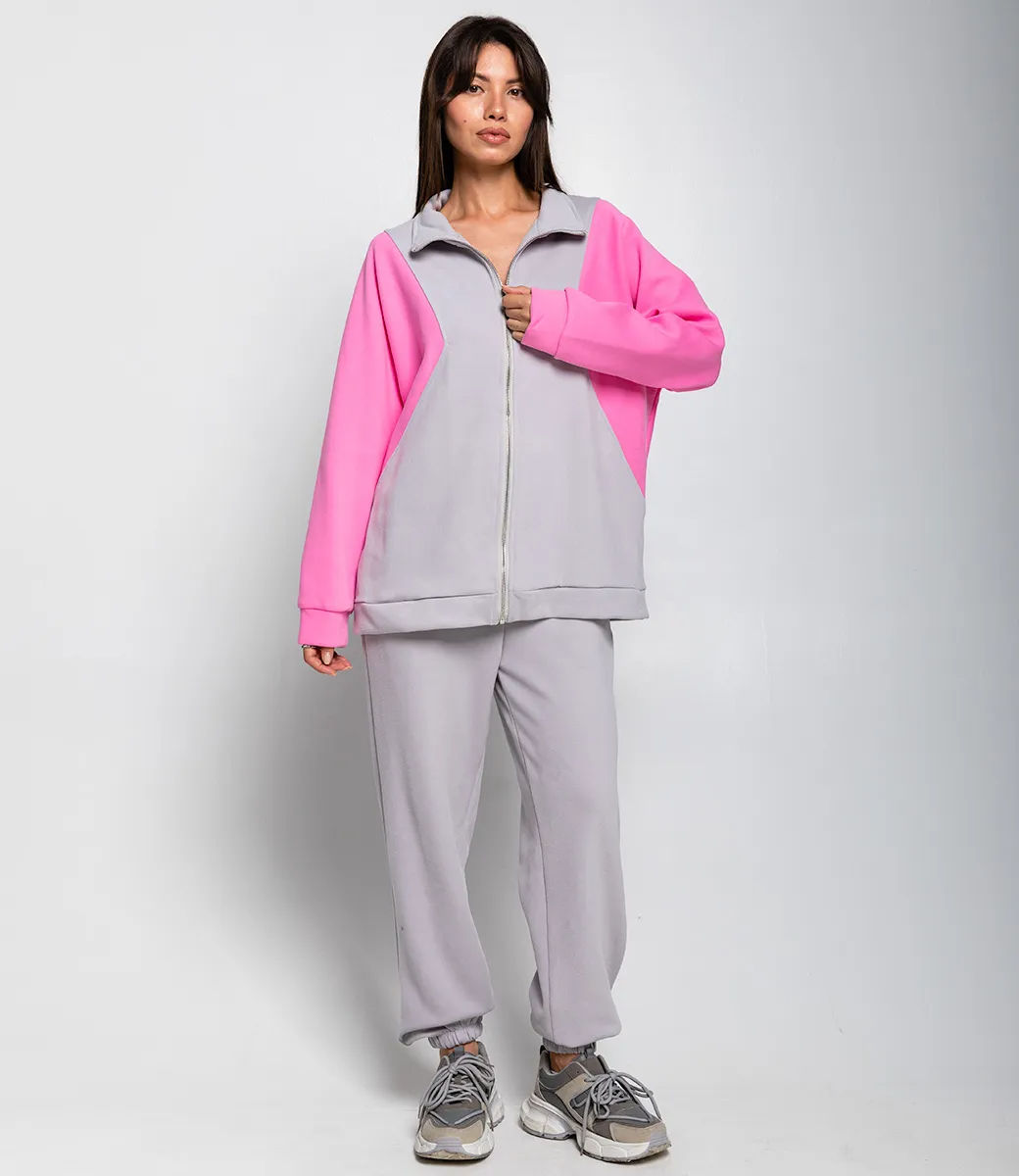Спортивный костюм #КТ8806 (3), серый,розовый
