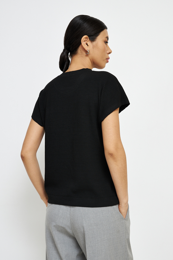 Джемпер свободного силуэта из фактурного эластичного полотна. Цельнокроеный короткий рукав. Круглый вырез горловины оформлен бейкой. Женский джемпер стал незаменимой и популярной разновидностью одежды, которая может применяться буквально во всех случаях жизни.