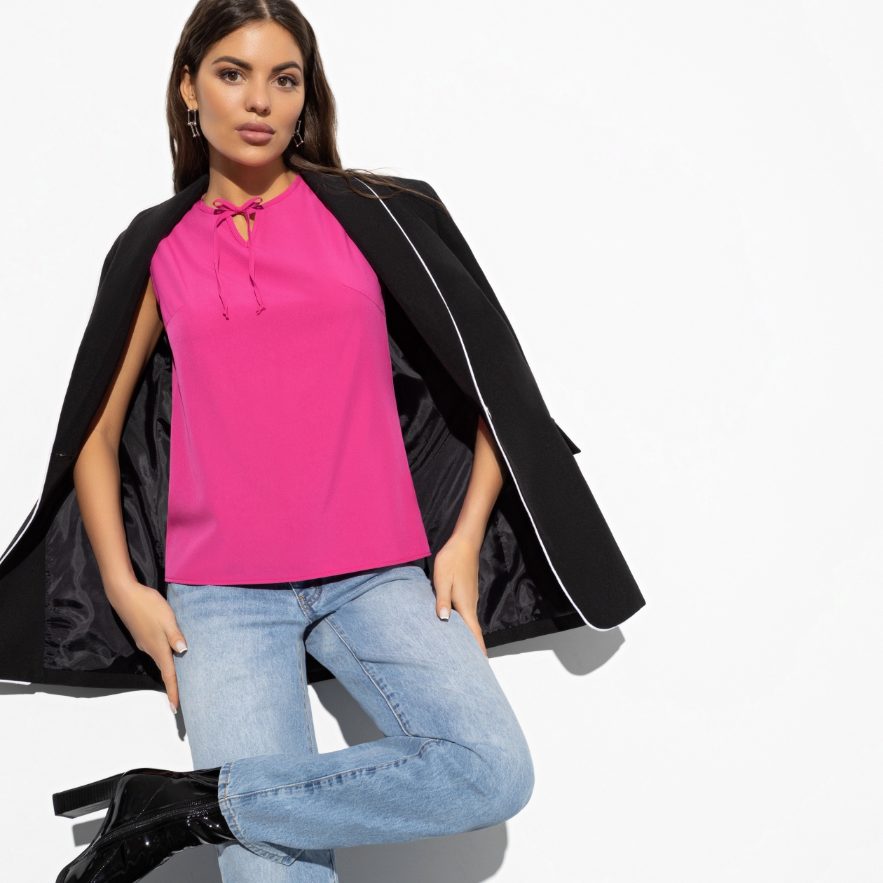 Трендовая фуксия рвет сезон! В ярко-розовой блузе ты – аппетитная клубничка, что не каждому «по зубам». Соблазнительный образ гарантирует непревзойденный магнетизм твоей харизме.