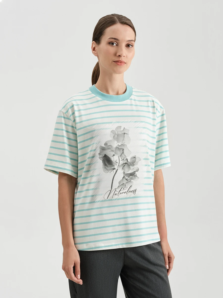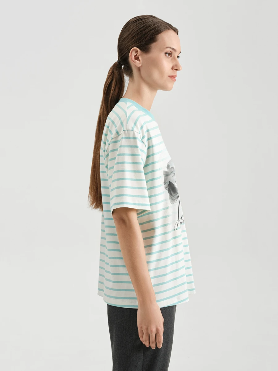 Ст.цена 1090р Футболка с принтом Бирюзовый 72.832.6085.237.1
