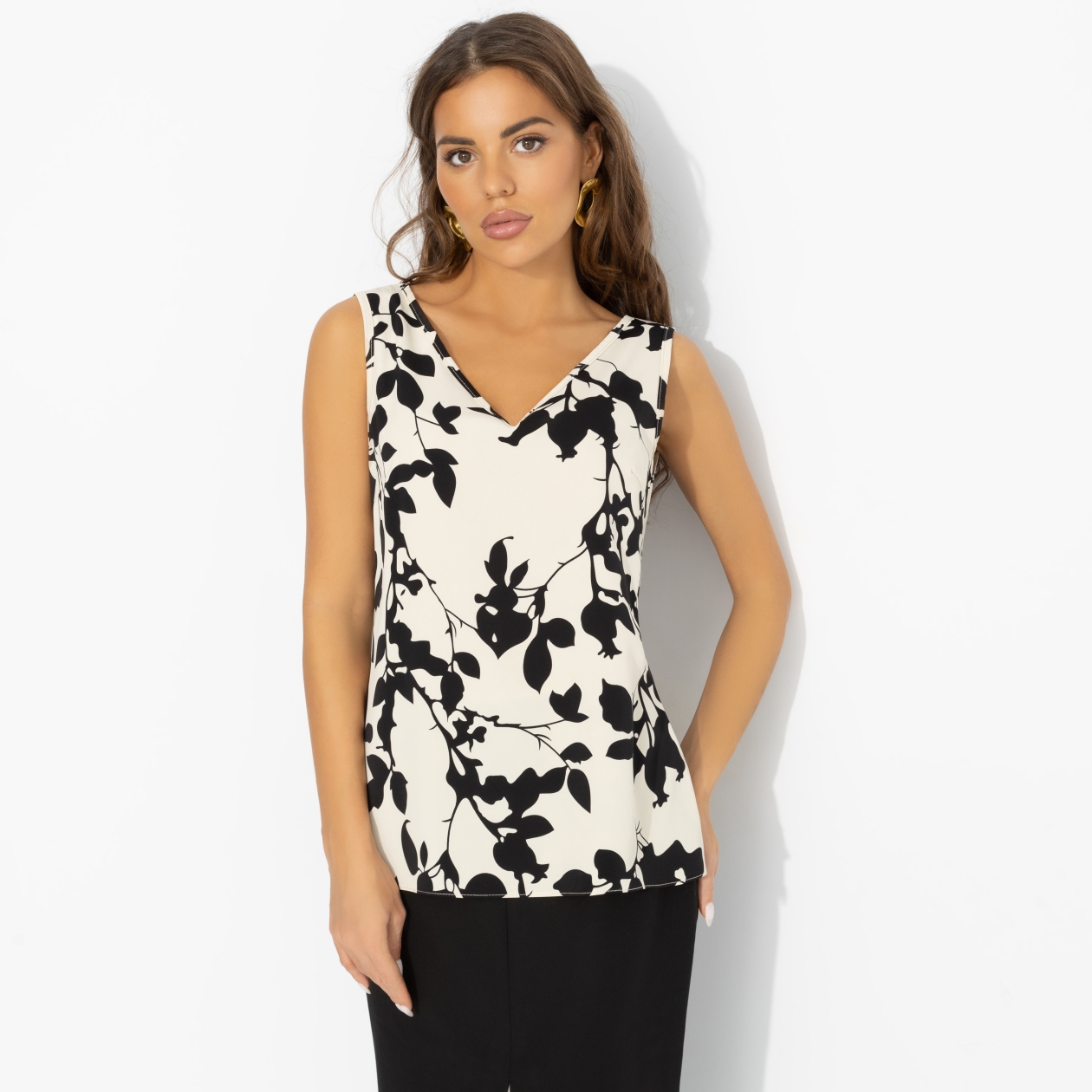 Трендрепорт Pinterest говорит: декаданс вернулся в чёрно‑белых силуэтах. Этот топ из дубайского шёлка – словно кадр из хорошего кино: контрастный принт повторяет линии листвы и теней, а лаконичный V‑вырез оставляет ровно столько обнажённой кожи, сколько нужно, чтобы загадка оставалась неразгаданной. Лёгкий топ без рукавов с мягко драпирующимся вырезом и графичным растительным принтом легко вписывается и в деловой, и в вечерний образ. Носите его с лаконичной чёрной юбкой или строгим жакетом – и получите тот самый изысканный декаданс, который делает образ современным и чуть провокационным.