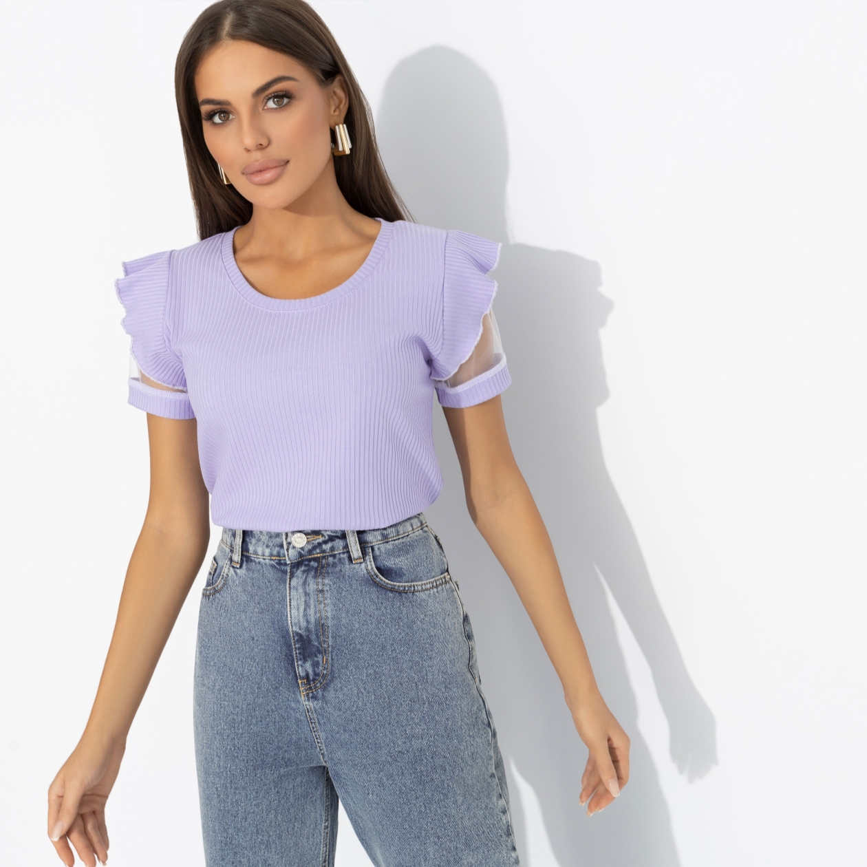 Подруги спрашивают, как тебе удается каждый день выглядеть стильно. Секрет прост – ЧАРУТТИ. Футболки бренда отличаются идеальной посадкой, нетривиальными расцветками и акцентными деталями. Футболка приталенного силуэта. Рюши на плечиках изделия. Рукава сделаны из тонкой сетки. Изделие хорошо смотрится в заправленном виде и навыпуск. Материал изделия в рубчик.