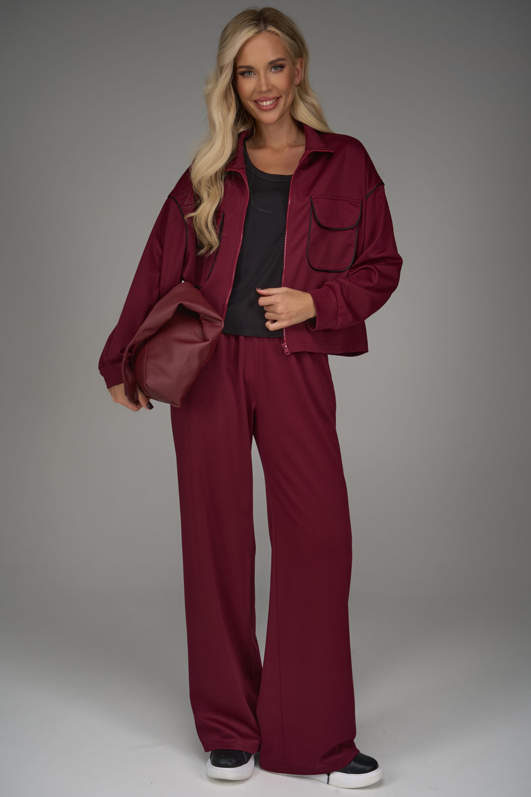 Костюм «Лакоста» в насыщенном бордовом цвете — сильное решение для яркого образа. Комфортная смесь материалов делает этот комплект отличным и на каждый день, и для более формальных событий. Элегантность, стиль и уверенность — всё в одном комплекте.