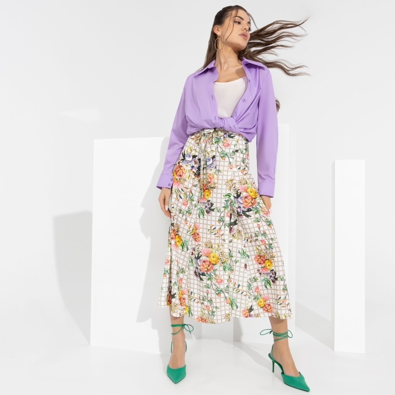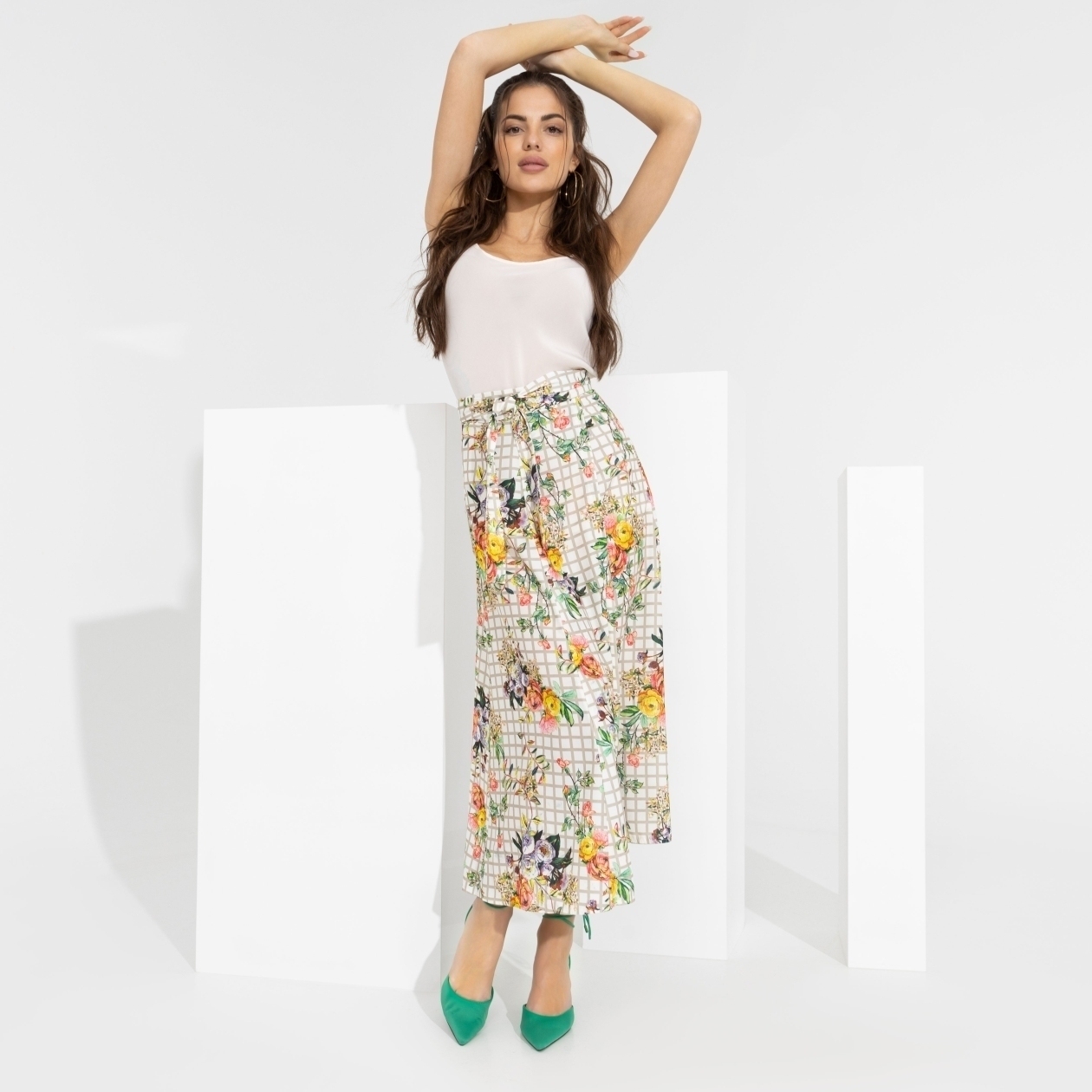 Лучший способ приблизить лето – стильная фотосессия. Позы и настроение – на тебе, а мы подскажем, как не промахнуться с образом. Юбка с очаровательным принтом – гарантия удачного кадра.
