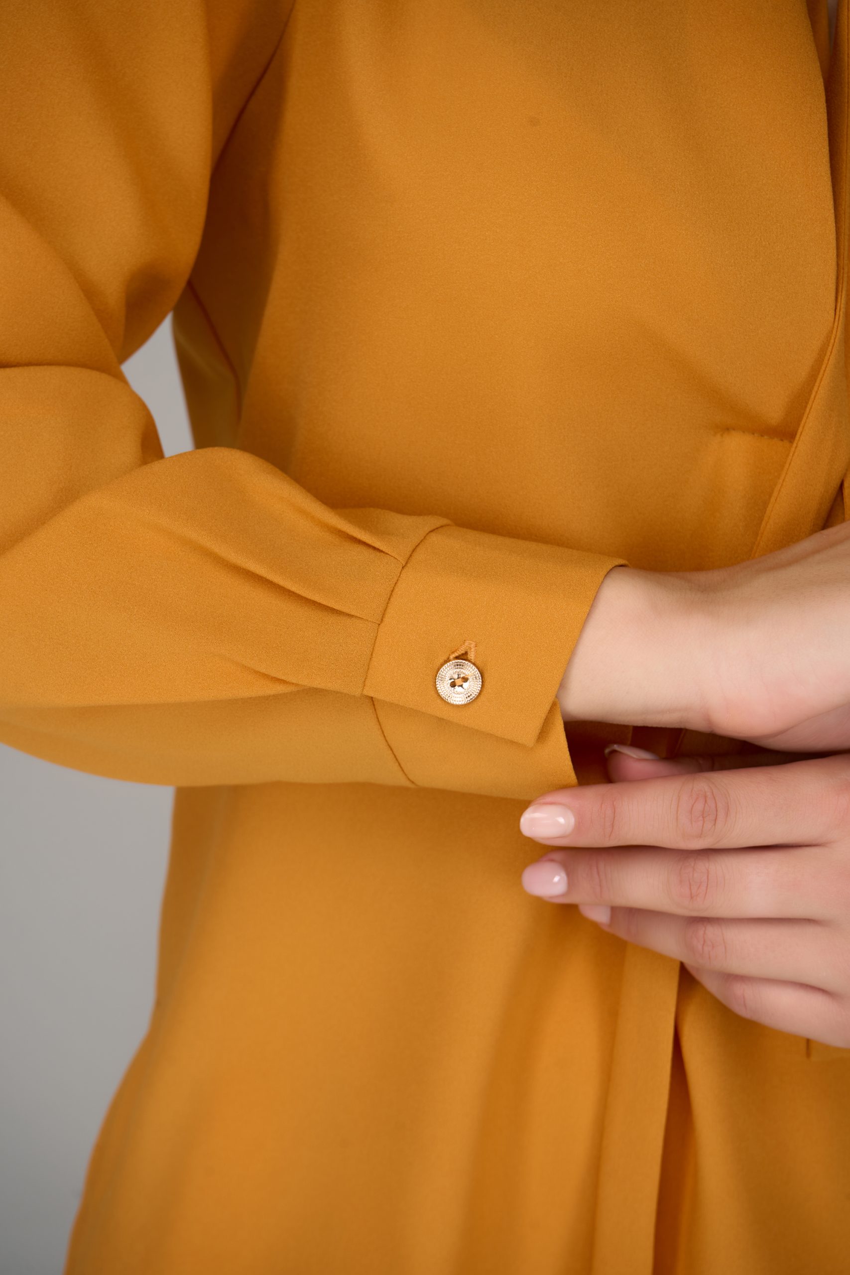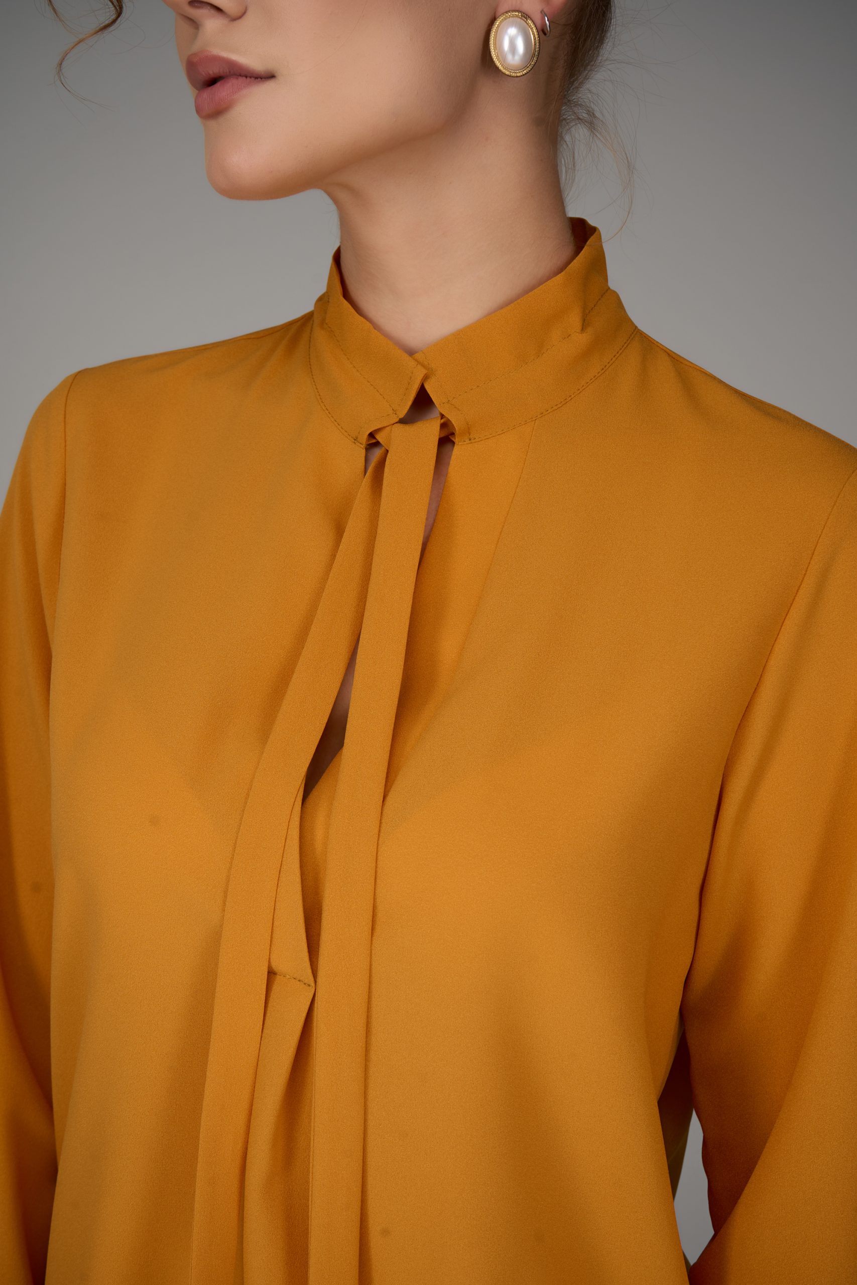 Стильная блузка “Аманда” прямого кроя в насыщенных оттенках. Лёгкая драпировка у воротника и длинные завязки создают элегантный акцент, который позволяет носить модель как с бантом, так и в свободном варианте.