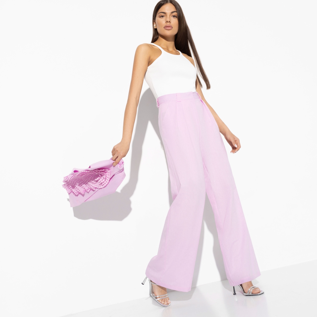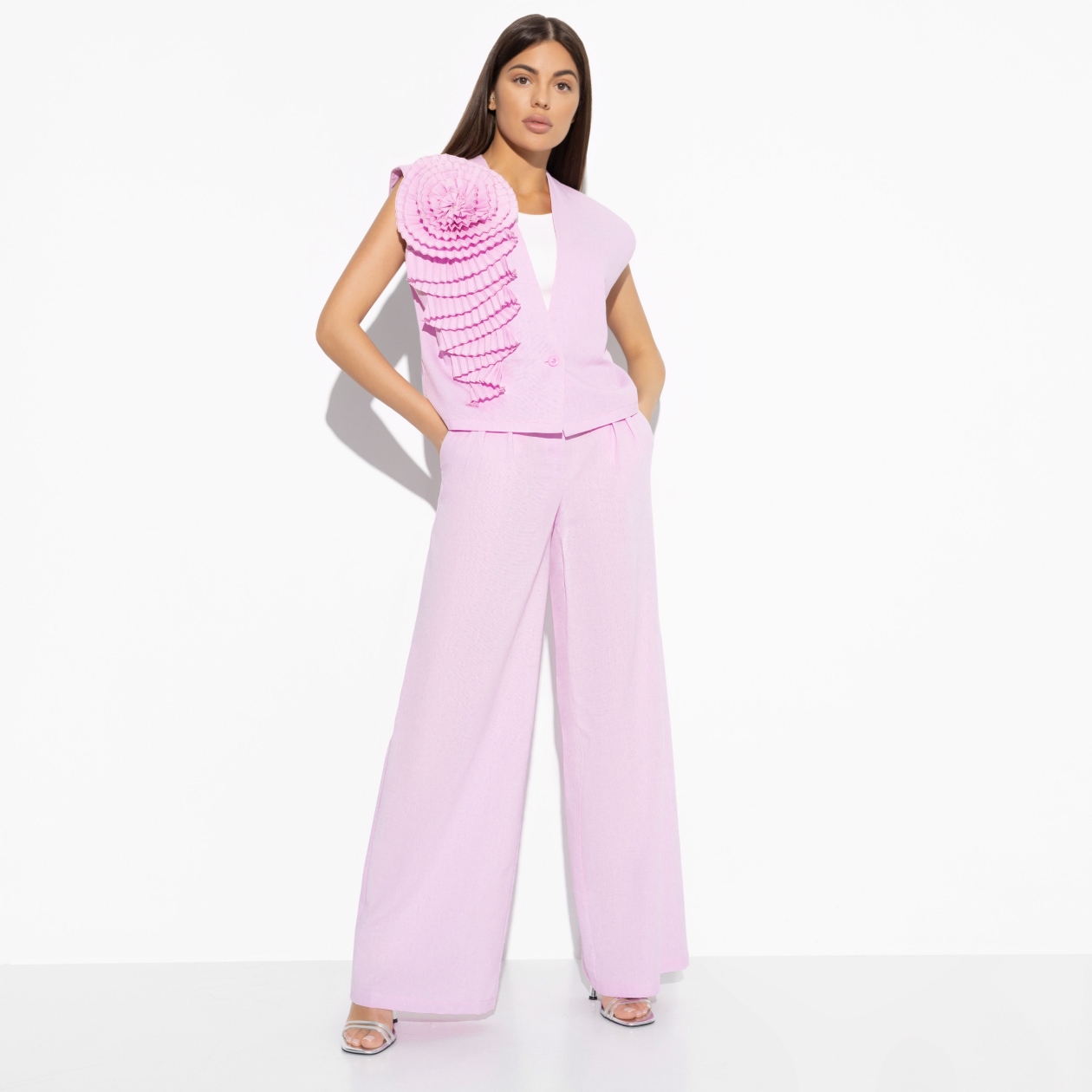 Брюки председателя женского модного сообщества. В модели в розовом цвете вы обретаете сверхполномечия. Например, определять на глаз отсутствие калорий в десерте, если вас им угостили.