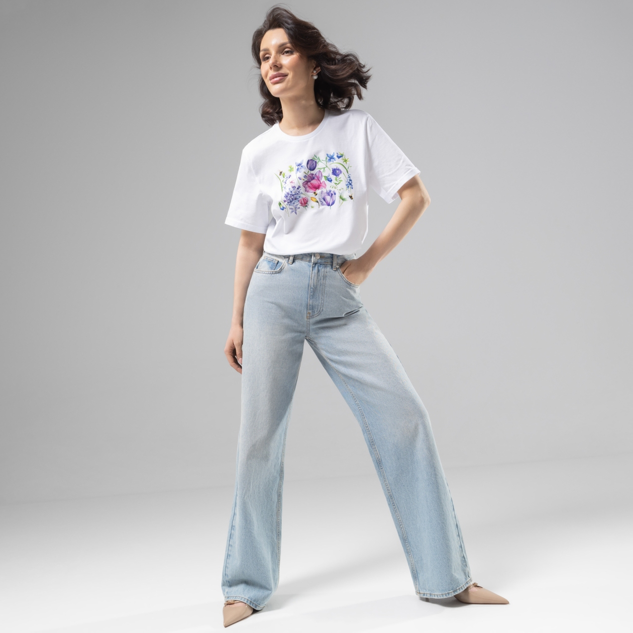 Когда речь идёт о футболках с принтом, эта футболка — ваше идеальное решение. Она привлекает внимание своим уникальным дизайном и способна стать изюминкой любого образа. Белая женская футболка с цветочным рисунком — это не просто одежда, а выражение индивидуальности и уверенности в себе. Её можно носить как заправленной, так и навыпуск, играя с образами и создавая новые стильные решения. Инвестируя в покупку футболок оптом, вы обеспечиваете себе доступ к высококачественному продукту, который будет пользоваться спросом на рынке.