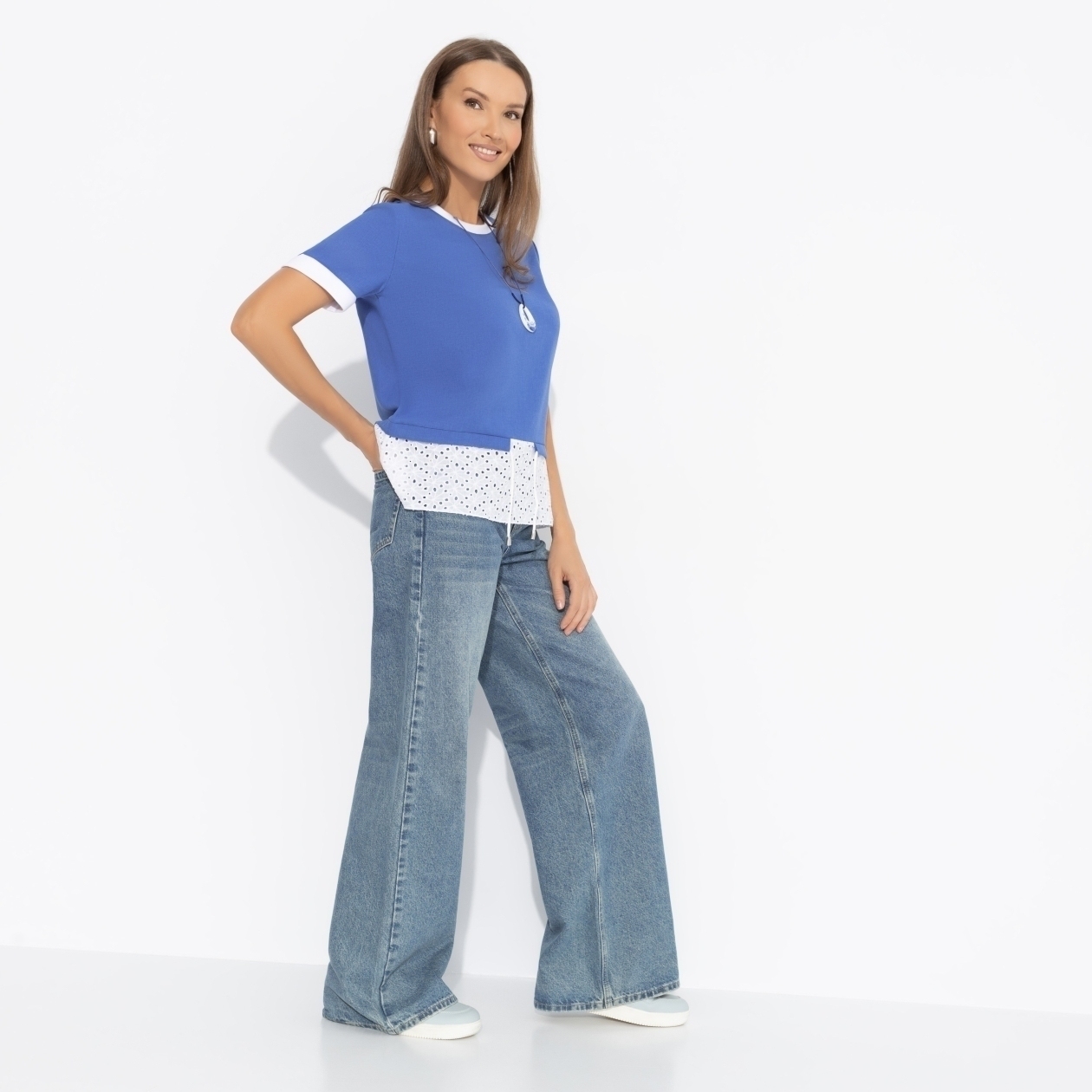 Футболка ЧАРУТТИ в цвете волны Средиземного моря создана для впечатлений. Она словно путешествие, где каждый штрих белого узора напоминает пену волн и свежий ветер в парусах. Надень её и отправляйся навстречу приключениям, прихватив с собой непревзойдённое чувство свободы. Футболка классического кроя. Комбинация нескольких видов материала. Есть кулиска с тонким шнурком. Подол выполнен из шитья.