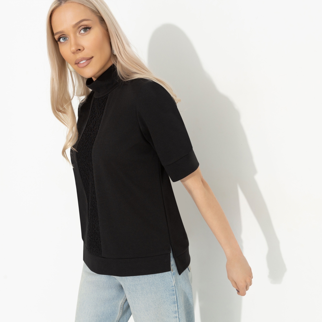 СТ. ЦЕНА 1390 руб//Водолазка комбинированная с кружевом, Фирменное приветствие (черная, со вставкой)